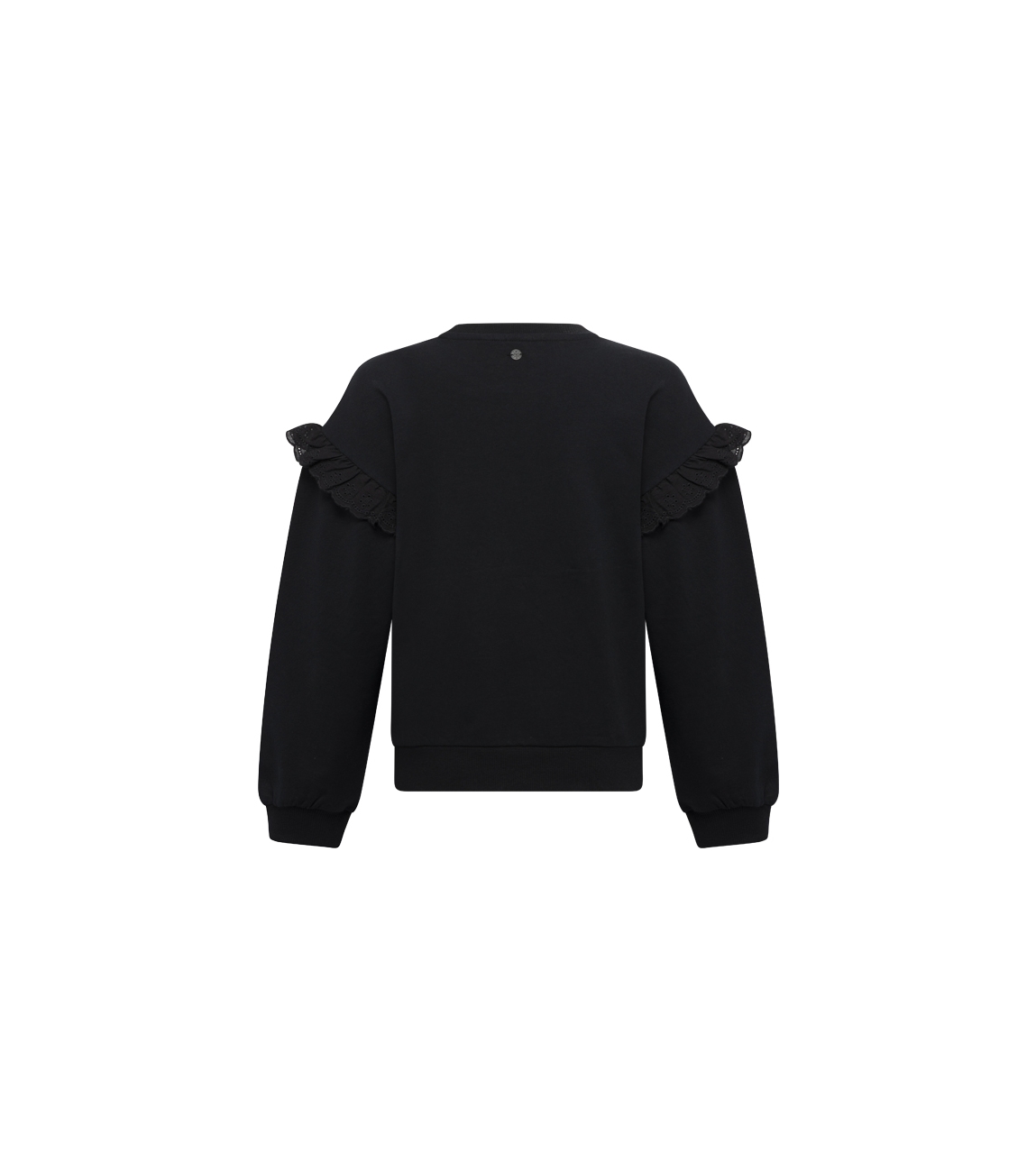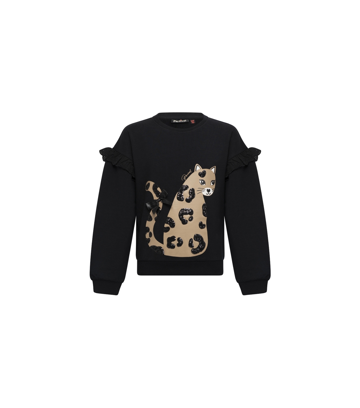Omschrijving | Sweat, panterprint pailetten, broderie ruche |