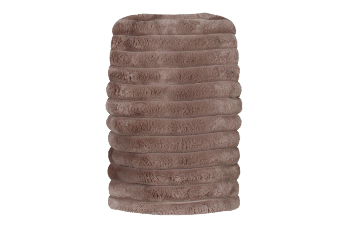 Omschrijving Pol. fake fur streep, satin gevoerd