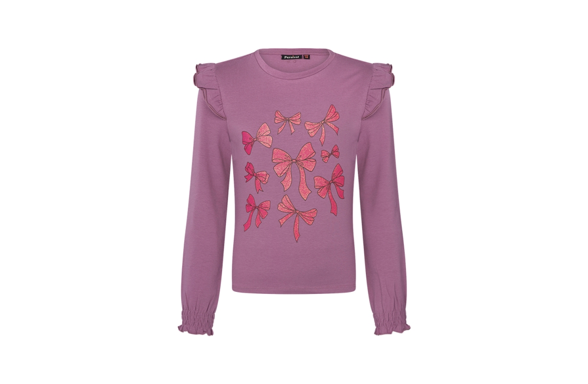 Omschrijving Co/ly, print strikjes, ruches schouder