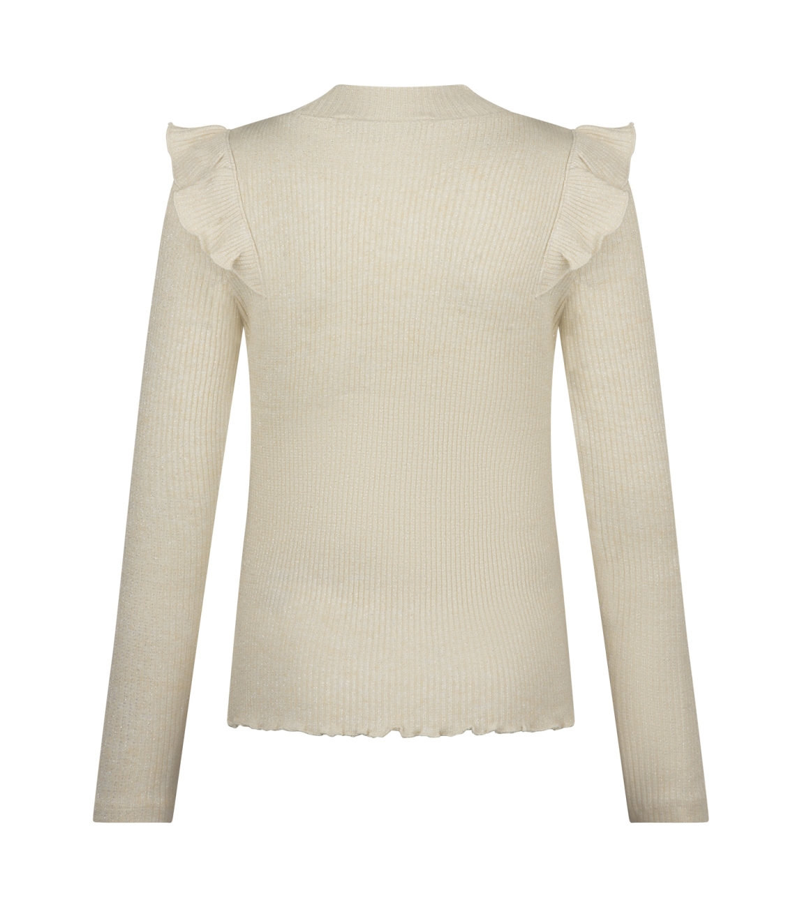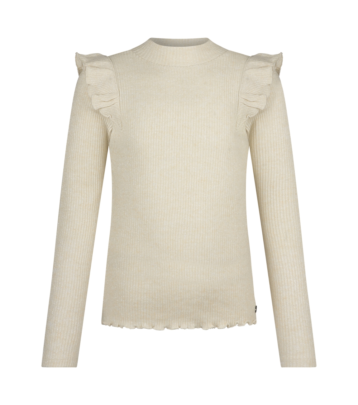 Omschrijving | Ribbrei met lurex, turtleneck, ruche |
