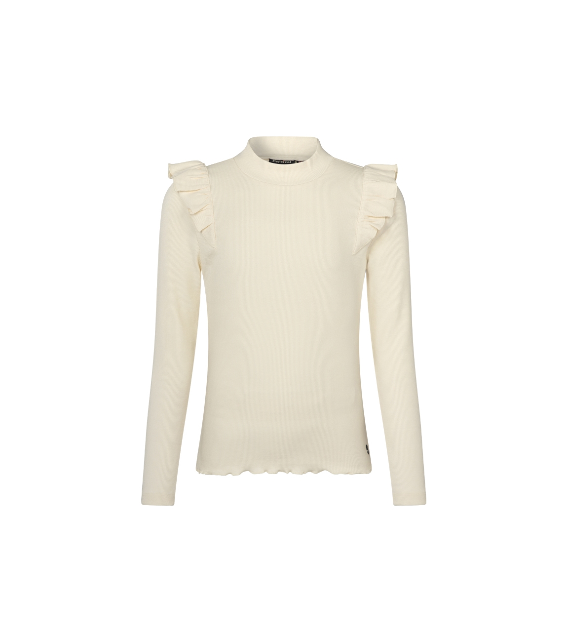 Omschrijving | Co/ly rib, turtleneck, ruche schouder |