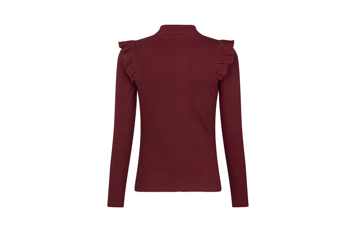 Omschrijving Co/ly rib, turtleneck, ruche schouder