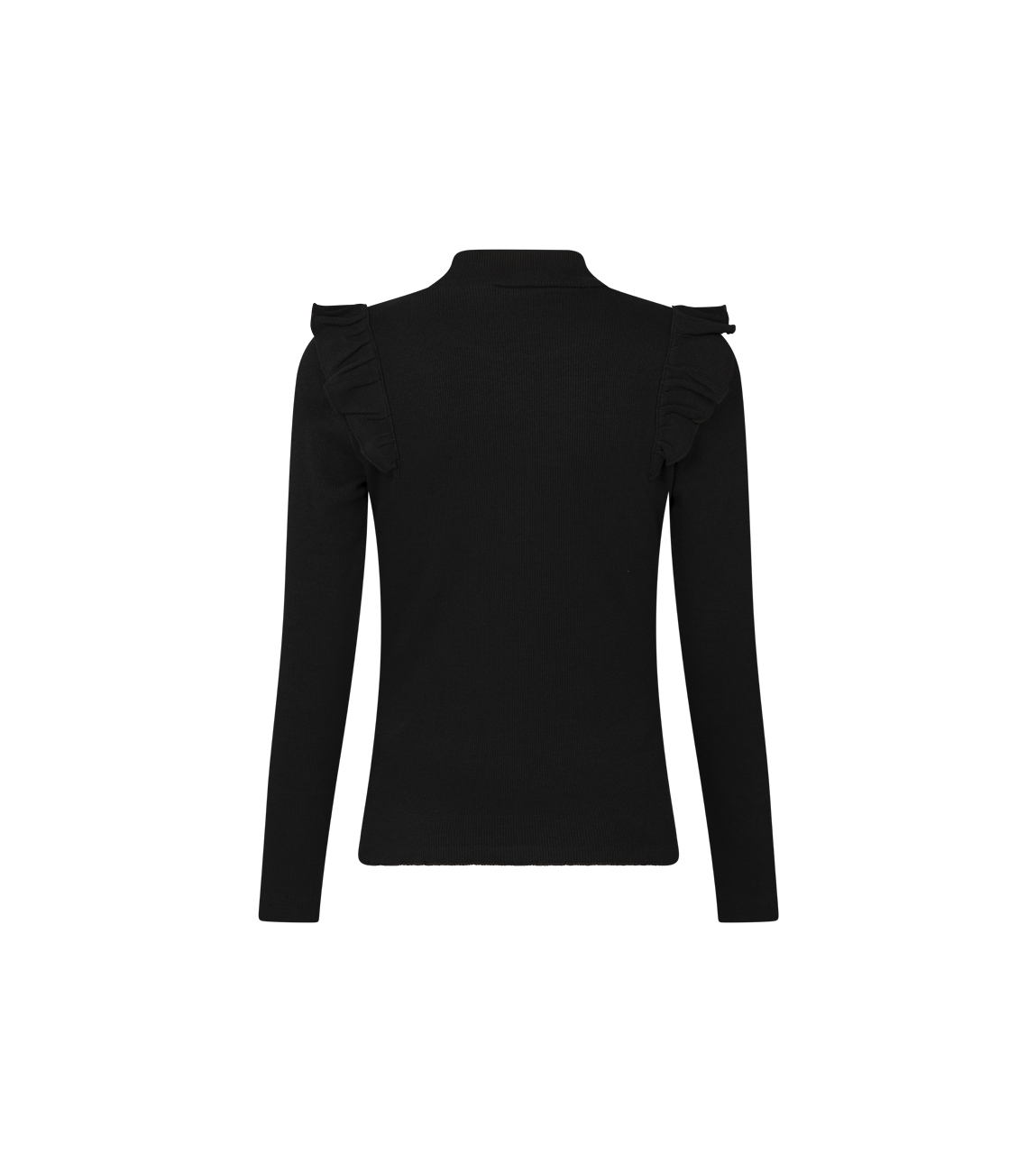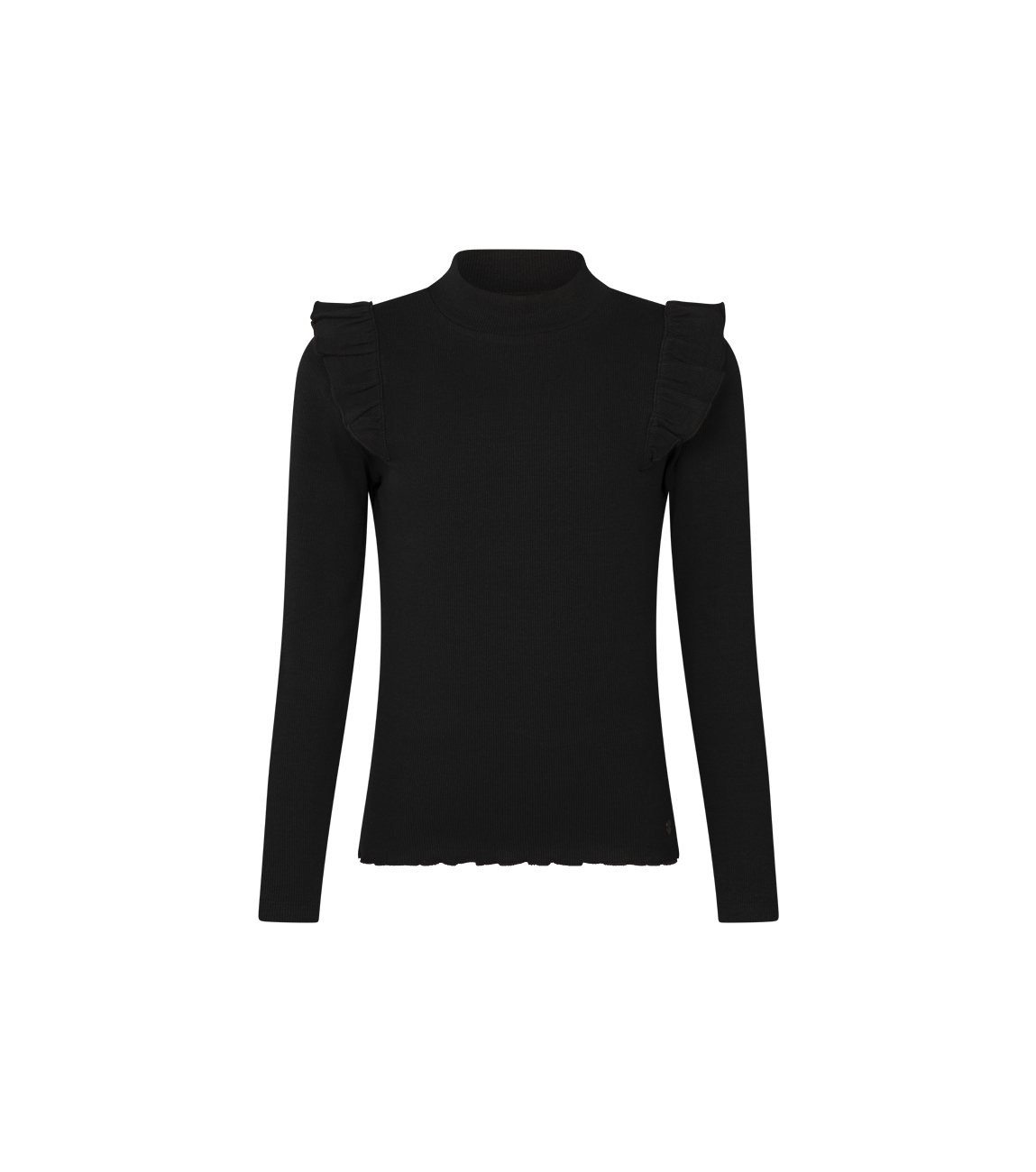 Omschrijving | Co/ly rib, turtleneck, ruche schouder |