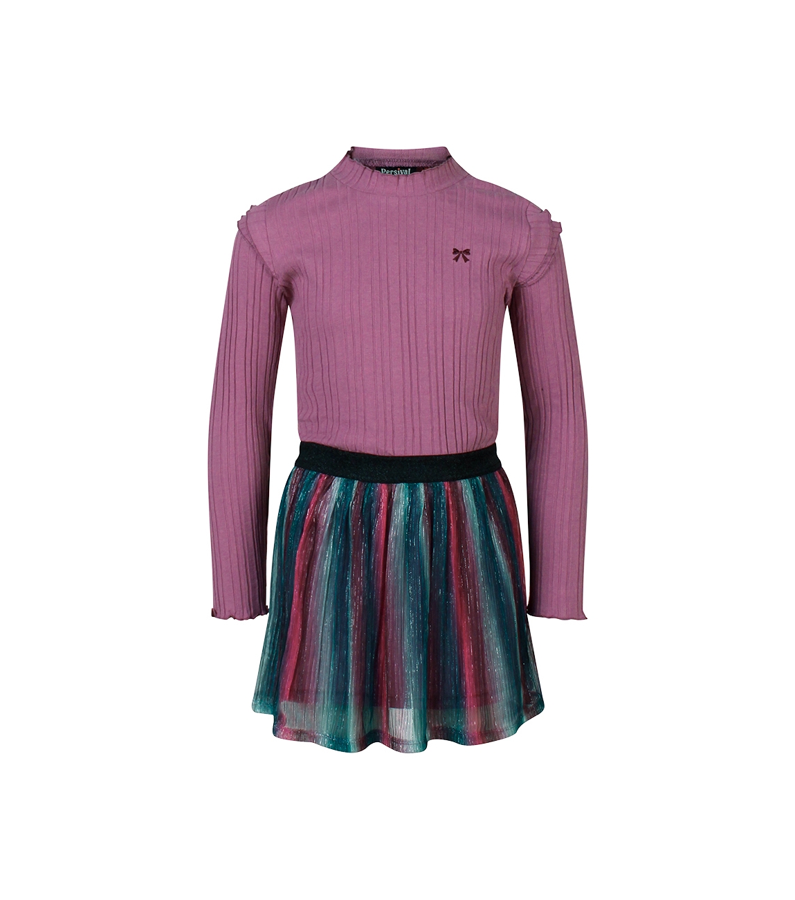 Omschrijving | Rib top turtleneck, multicolor plisse rok |