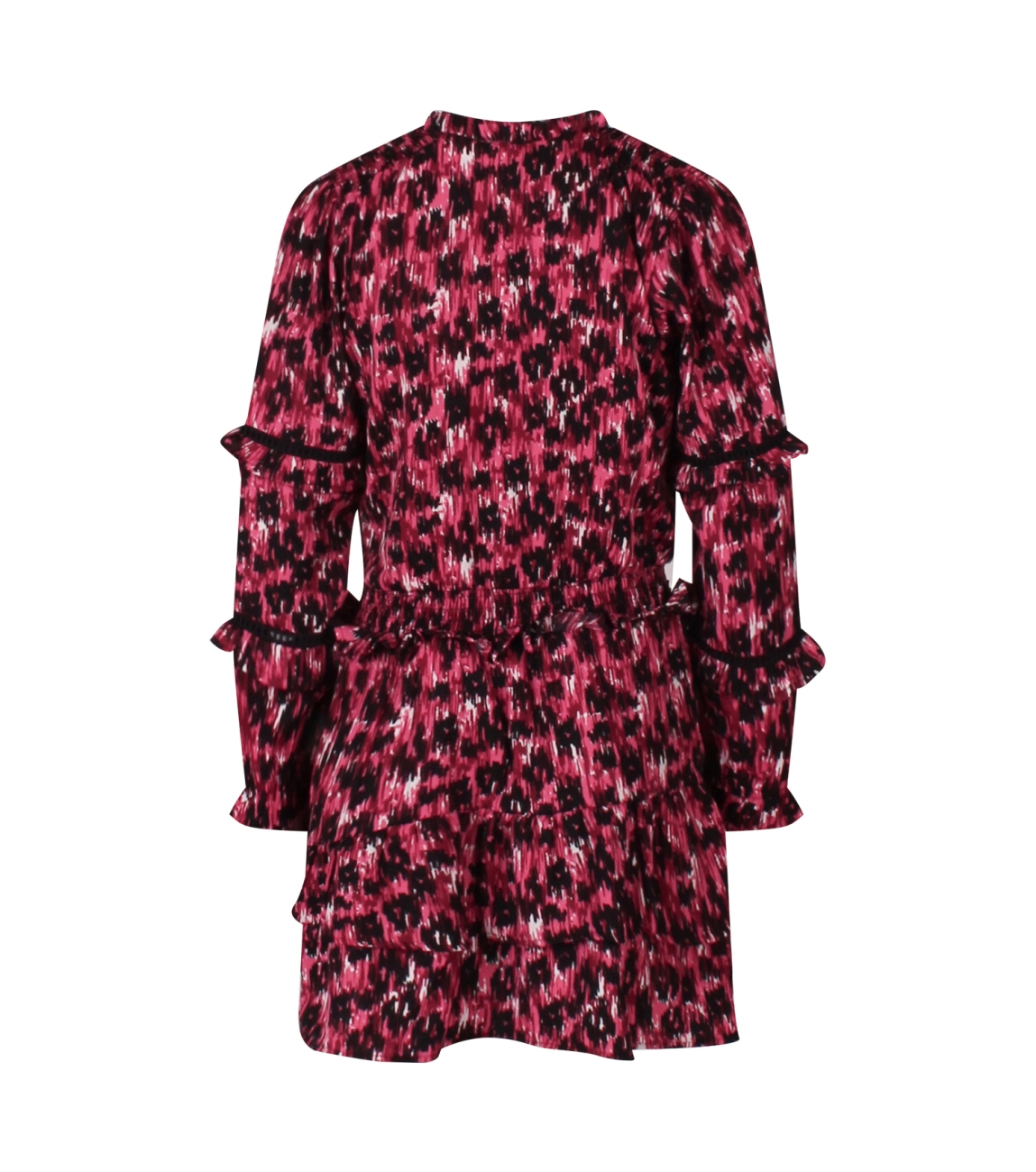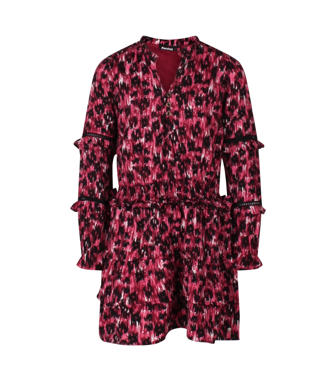 Omschrijving | Pol. crepe, animaldessin, smock, ruches |