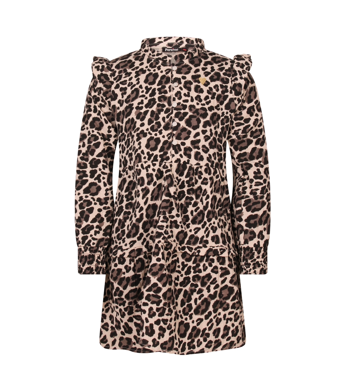Omschrijving | Mousseline, panterdessin, ruches |