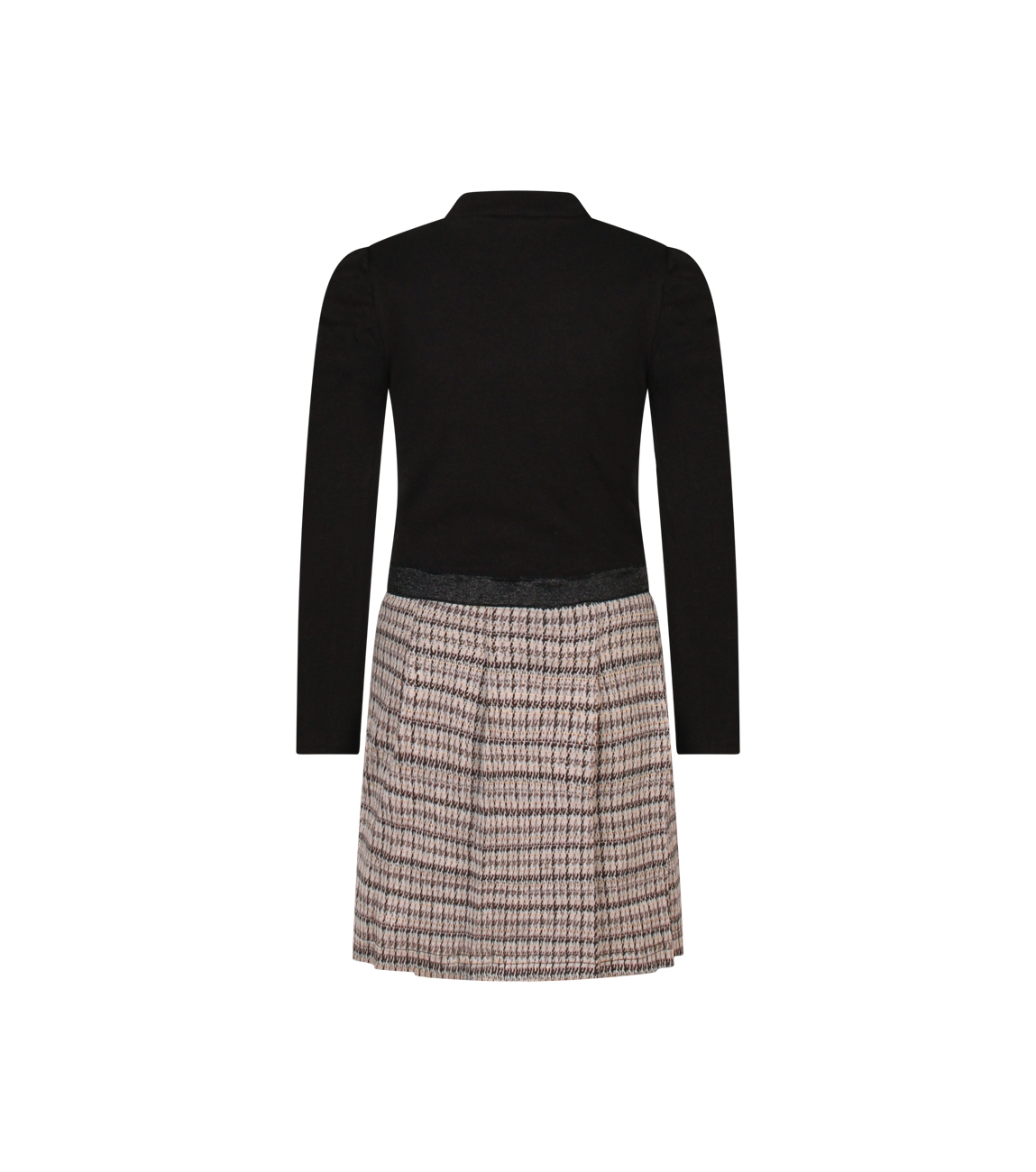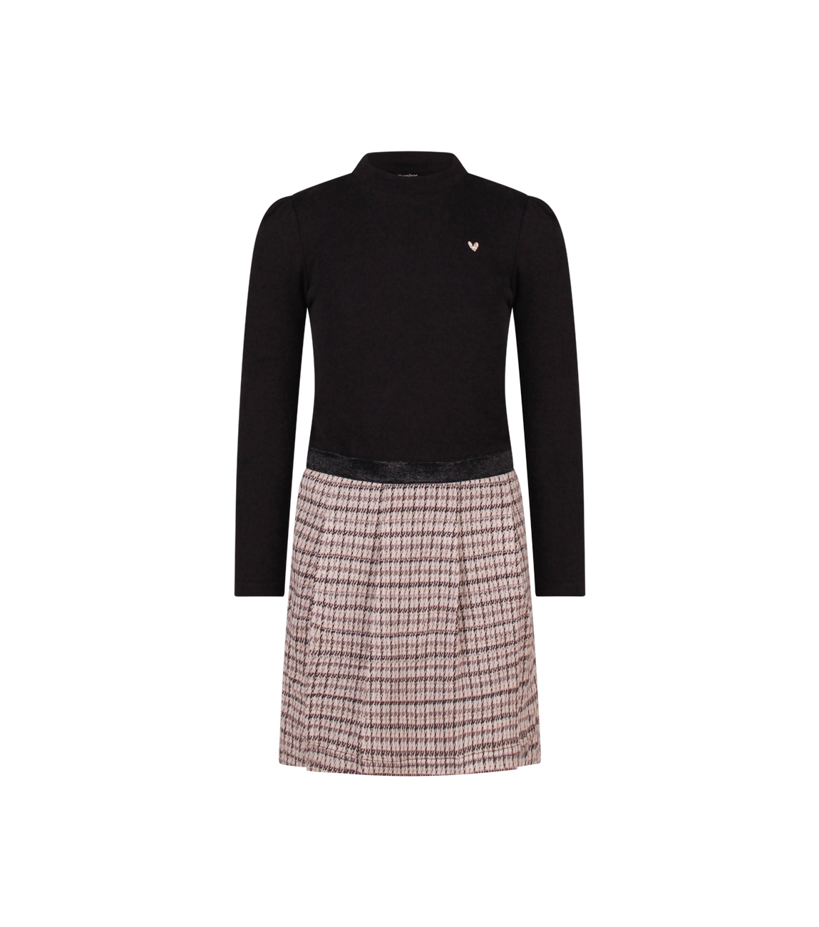 Omschrijving | Ribtop turtleneck, geruite plooirok lurex |