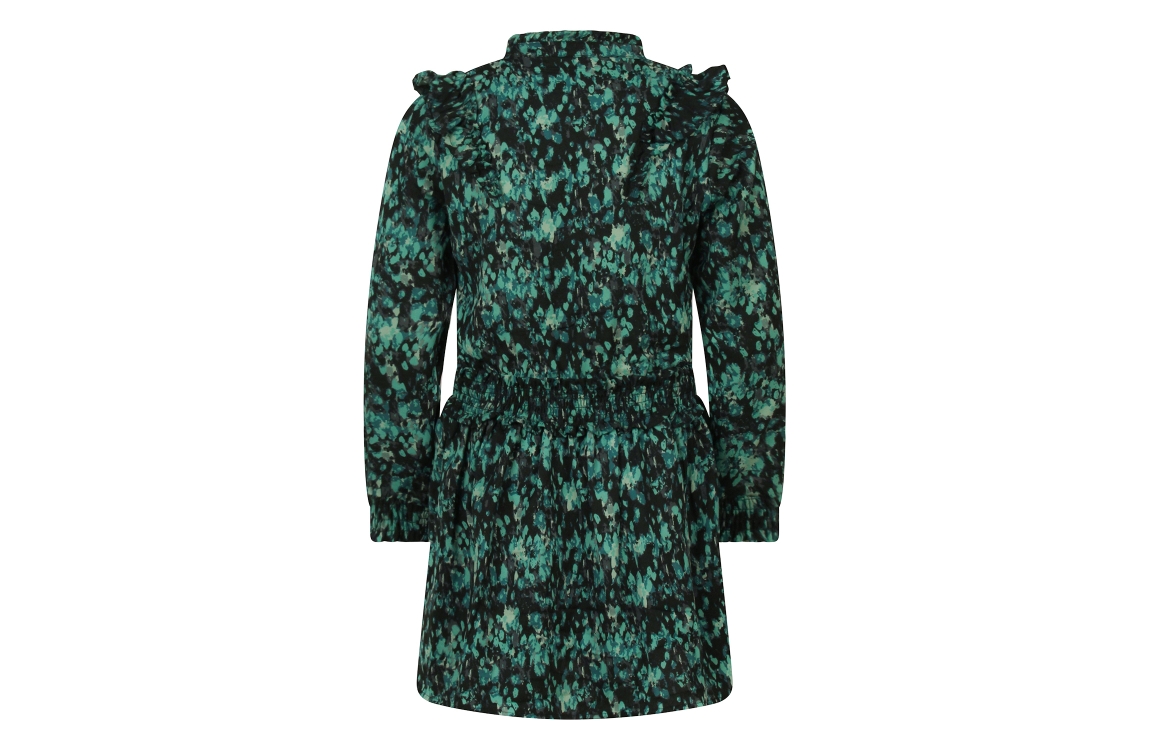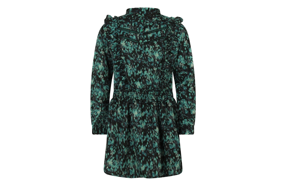 Omschrijving Pol. crepe, confettidessin, ruches/smock