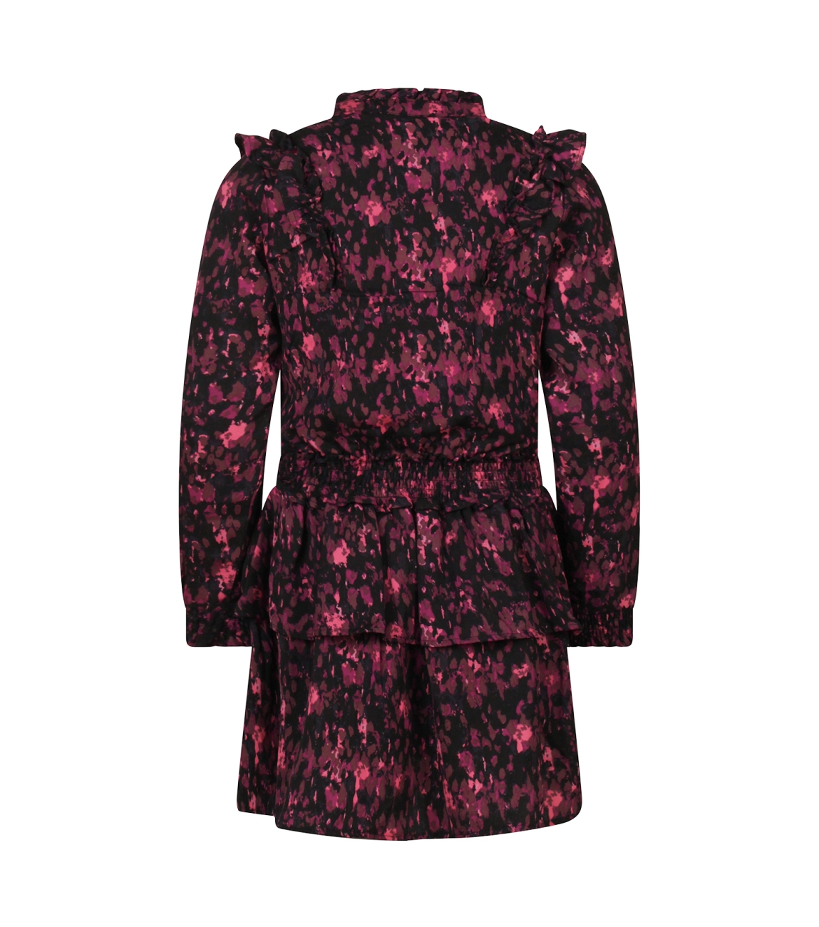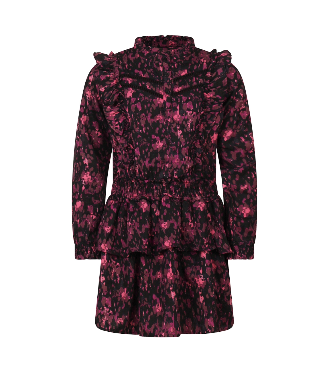 Omschrijving | Pol. crepe, confettidessin, ruches/smock |