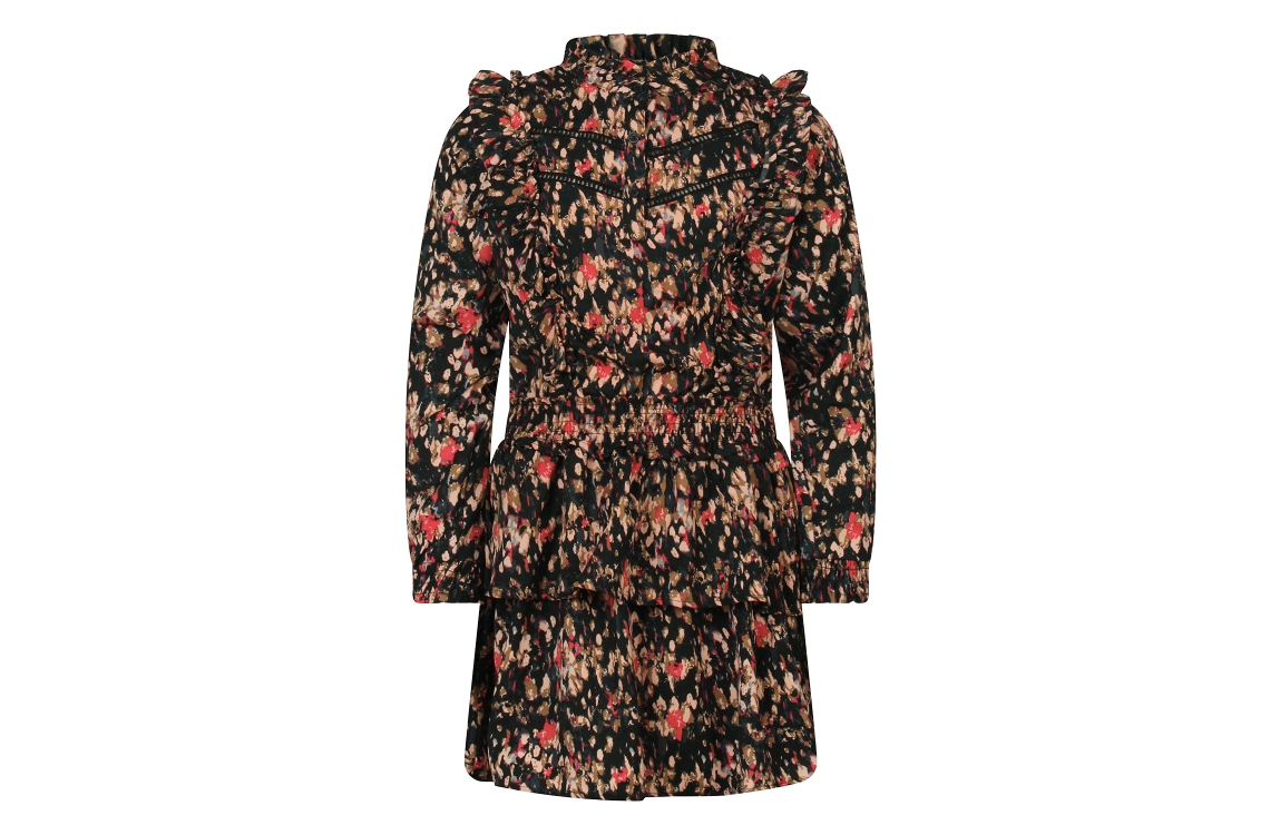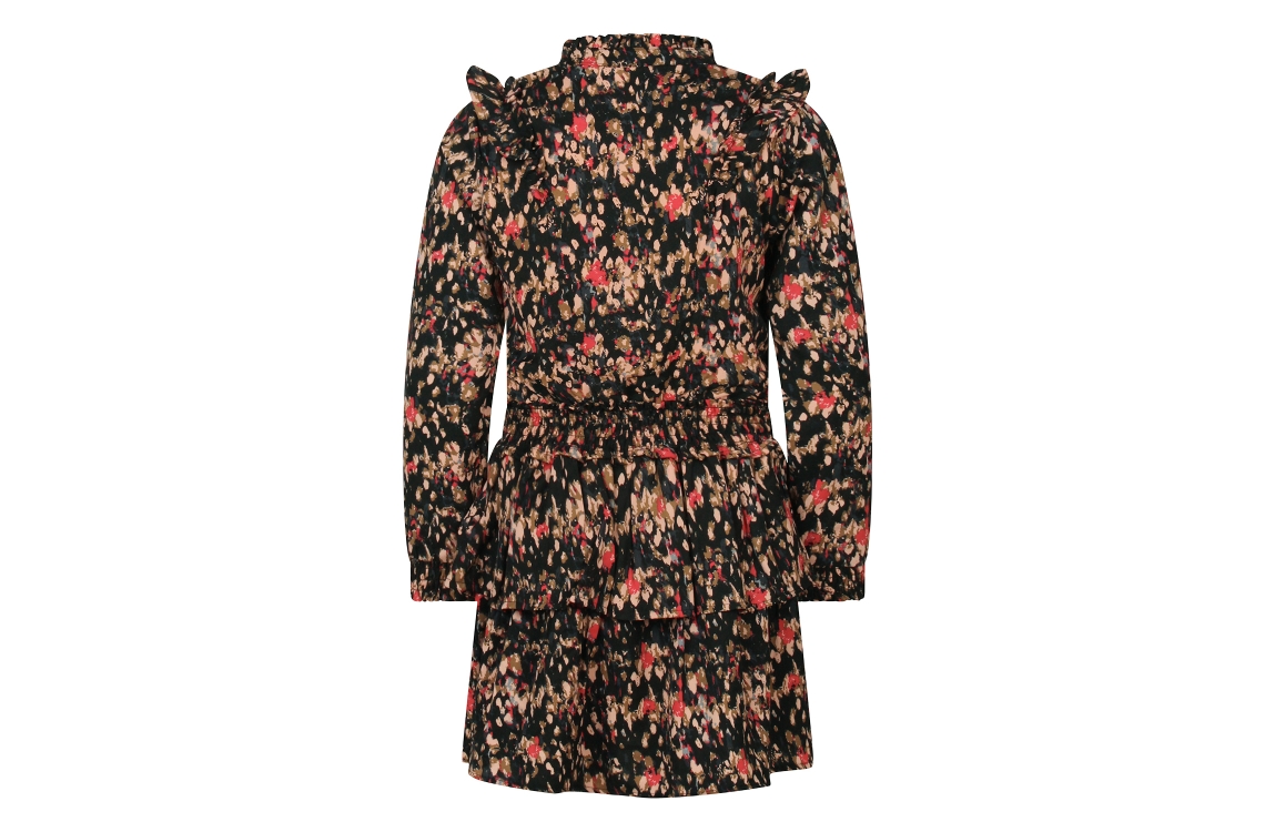 Omschrijving Pol. crepe, confettidessin, ruches/smock