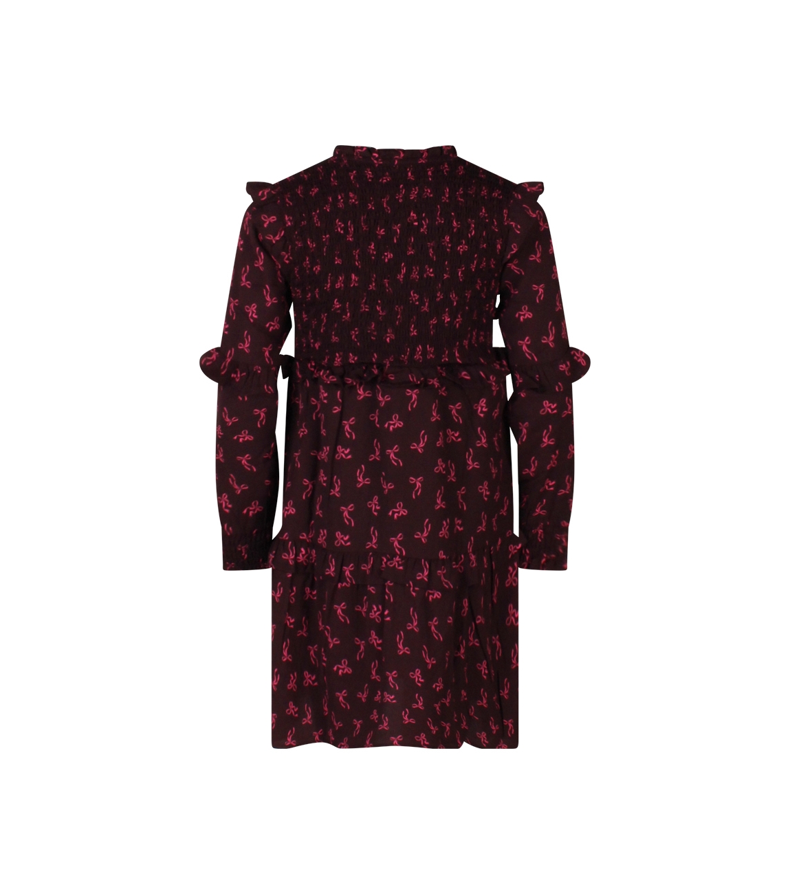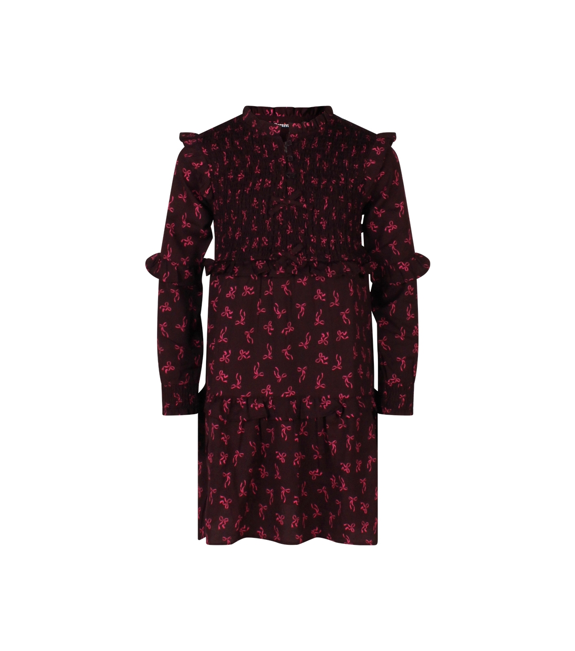 Omschrijving | Pol. crepe, strikdessin, gesmockte bovenkant |