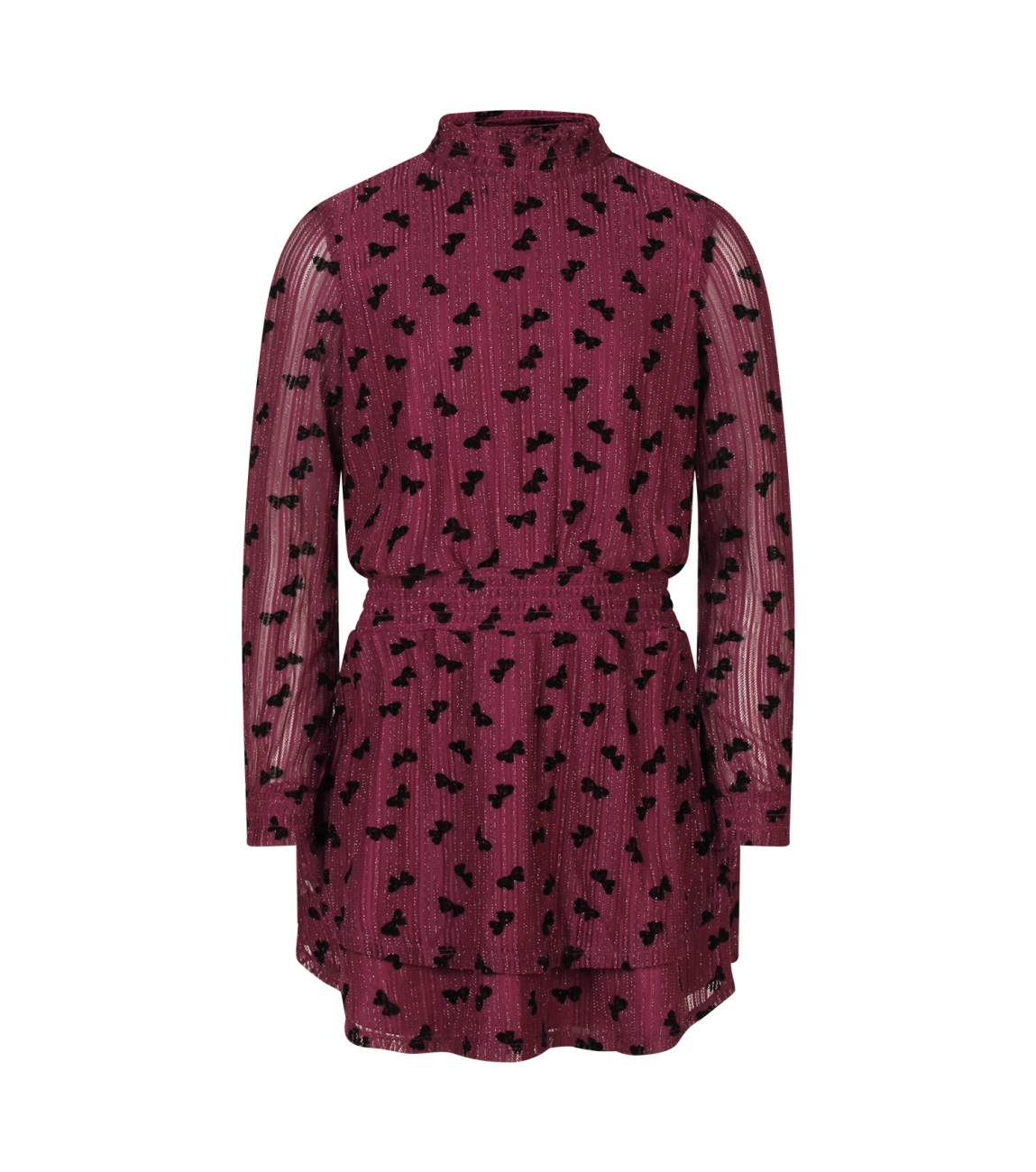 Omschrijving | Mesh met lurex/strikjes, gesmockt |