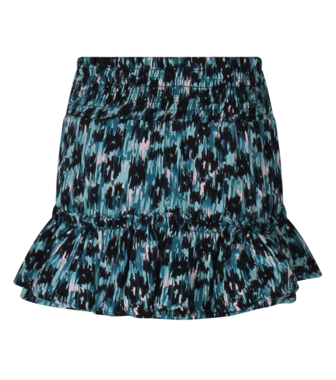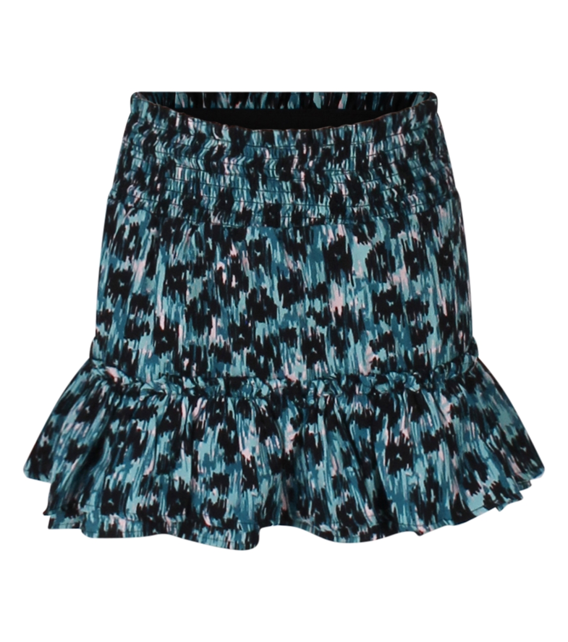 Omschrijving | Pol. crepe, animaldessin, stroken, ruches |