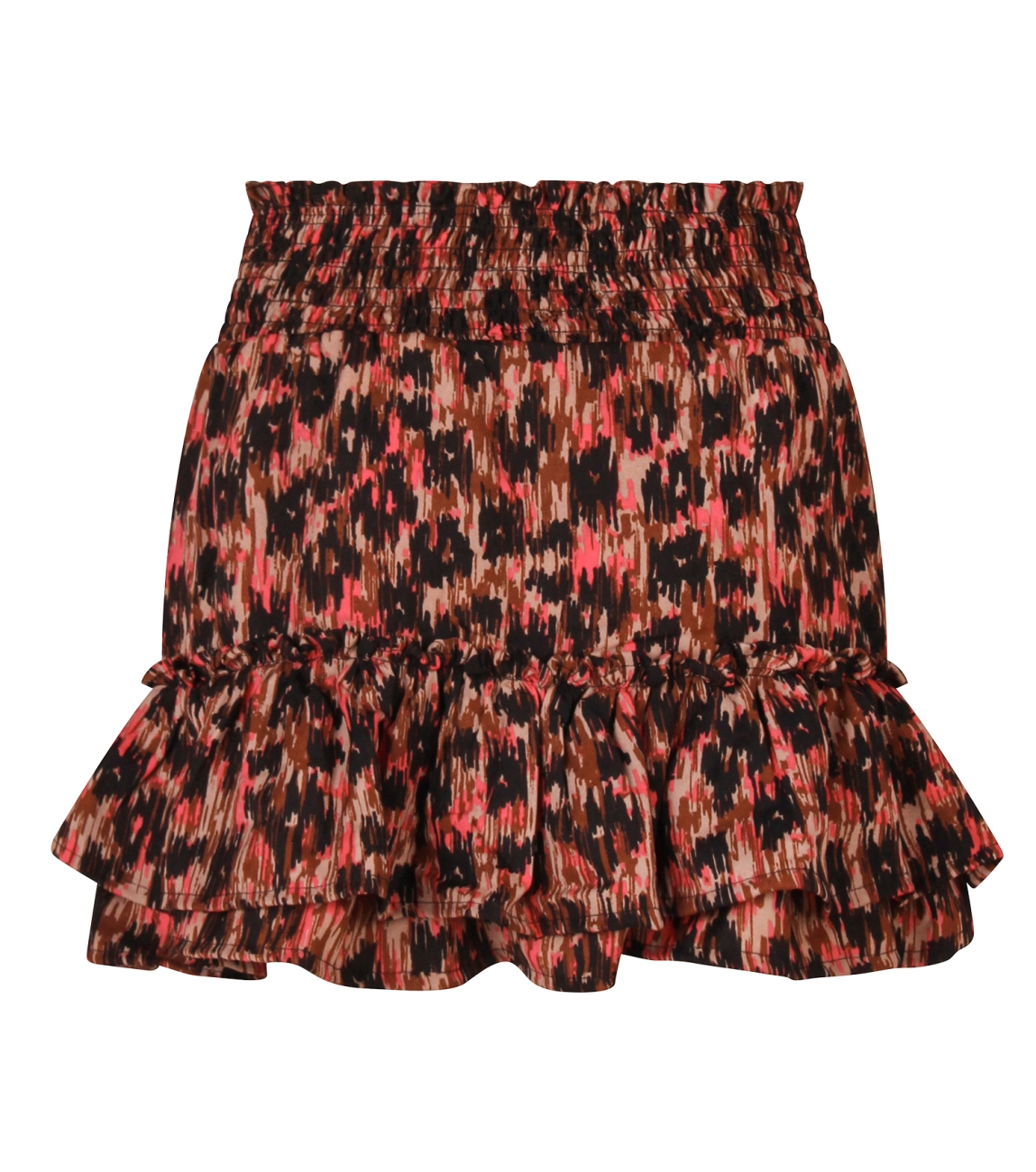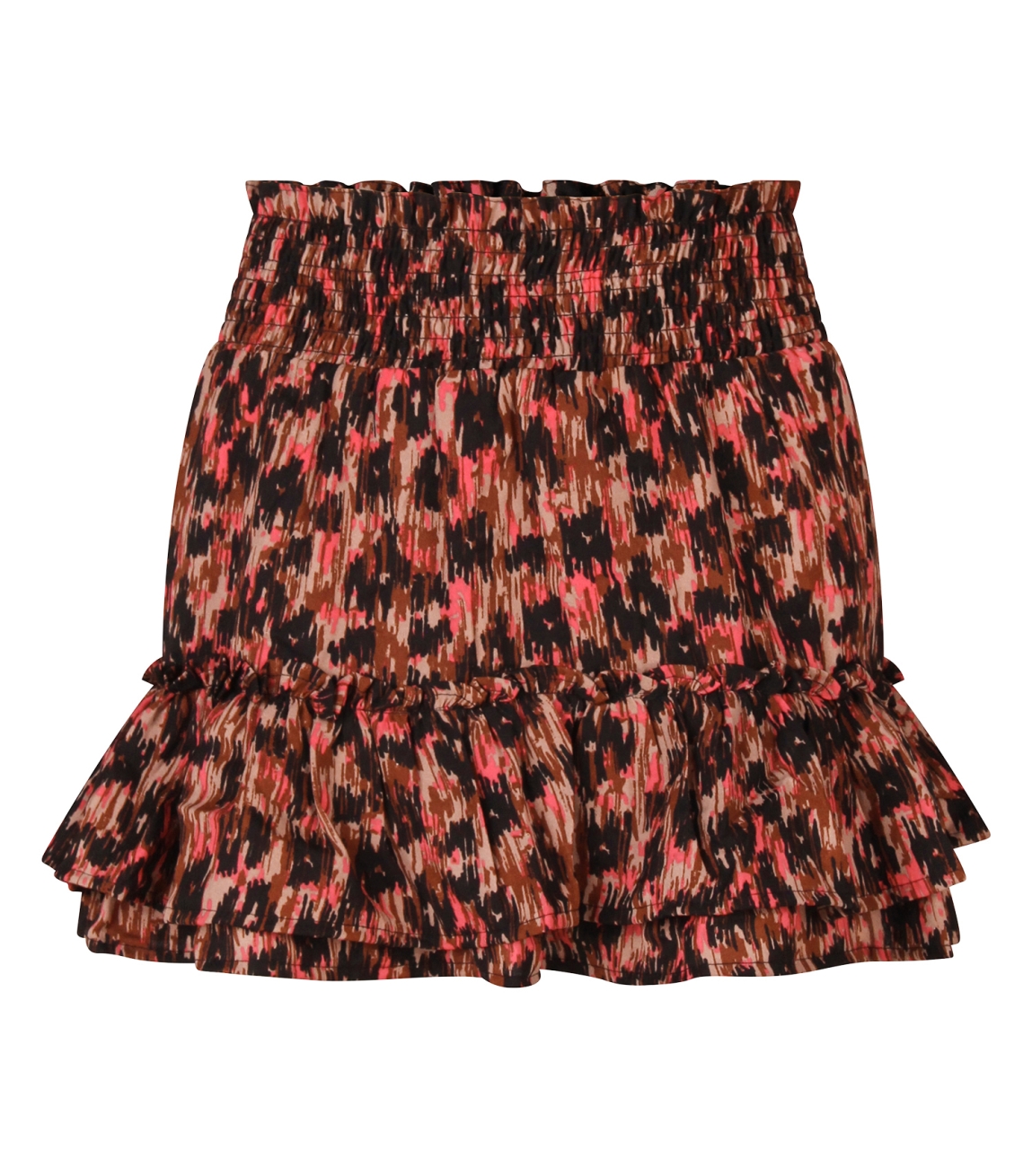 Omschrijving | Pol. crepe, animaldessin, stroken, ruches |