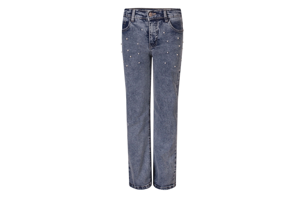 Omschrijving Co/ly denim, parelstuds, wijde pijp