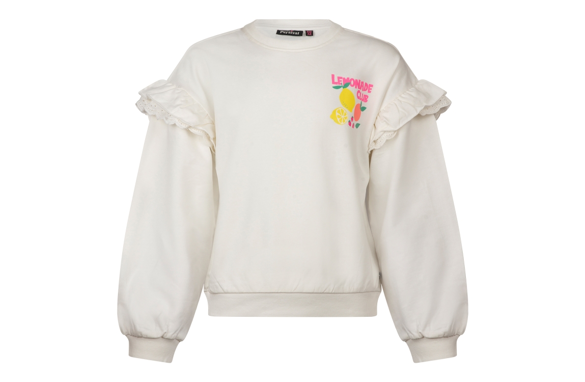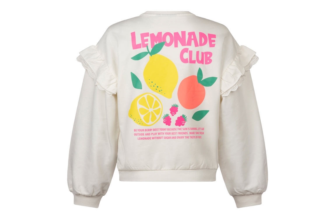 Omschrijving Co/ly sweat, ruche mouw, print voor/achter