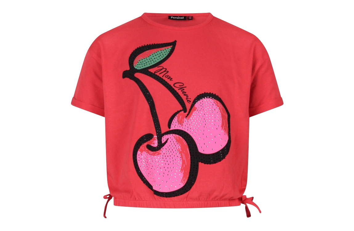 Omschrijving Co/ly, print kers/strass, elastiek onder