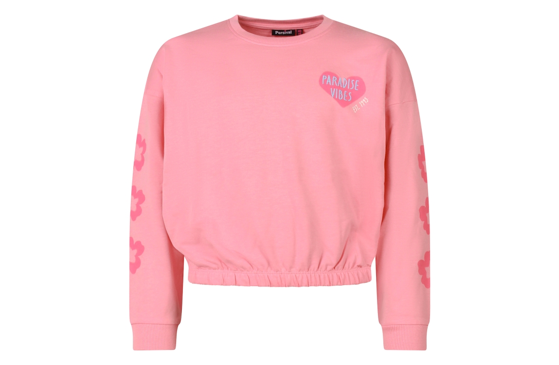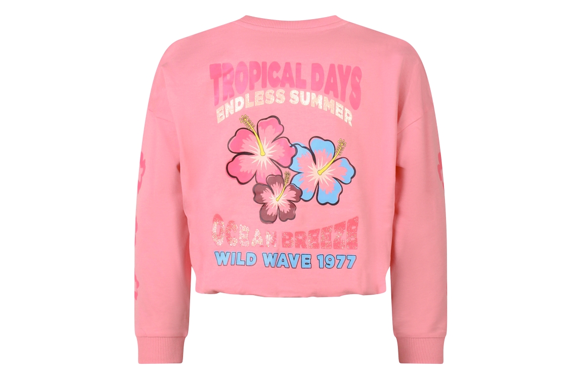 Omschrijving Sweat, print voor/achter/mouw, elastiek onder