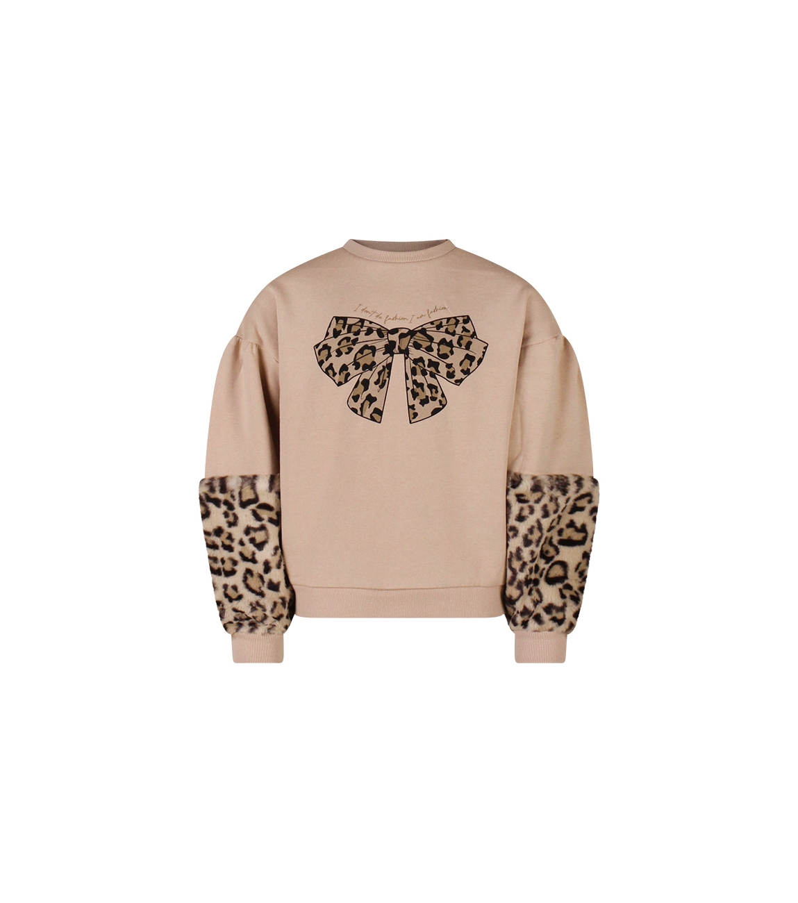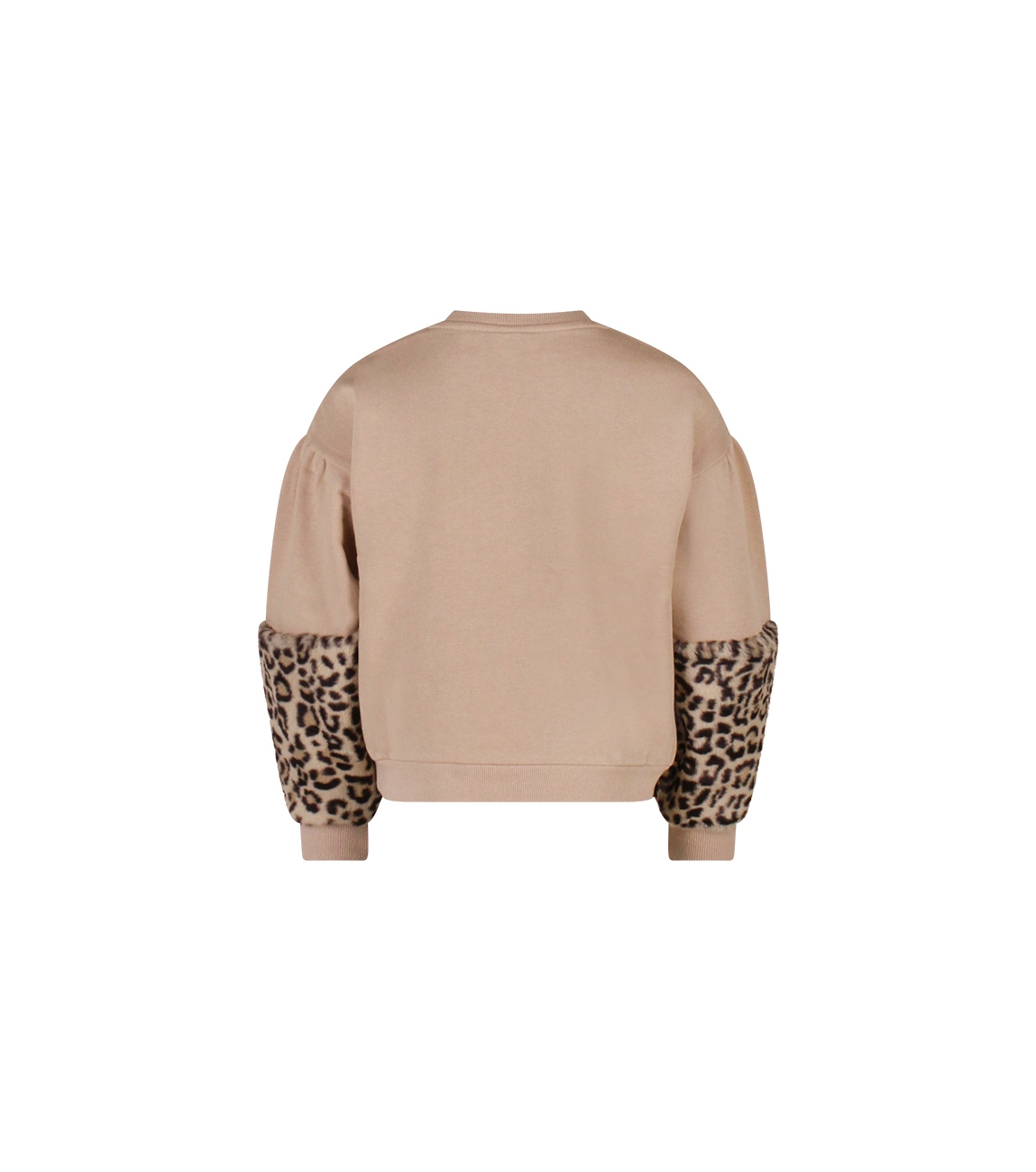 Omschrijving | Sweat, print, fake fur pantermouwen |