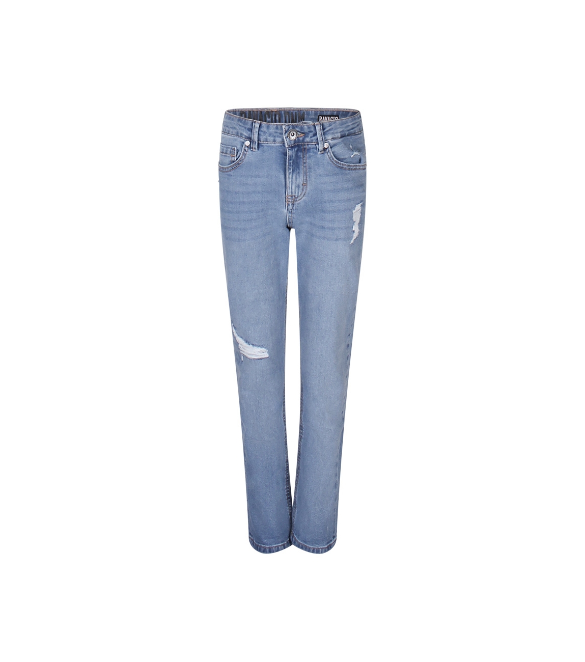 Omschrijving | Co/ly denim, damaged plekken, loose fit |
