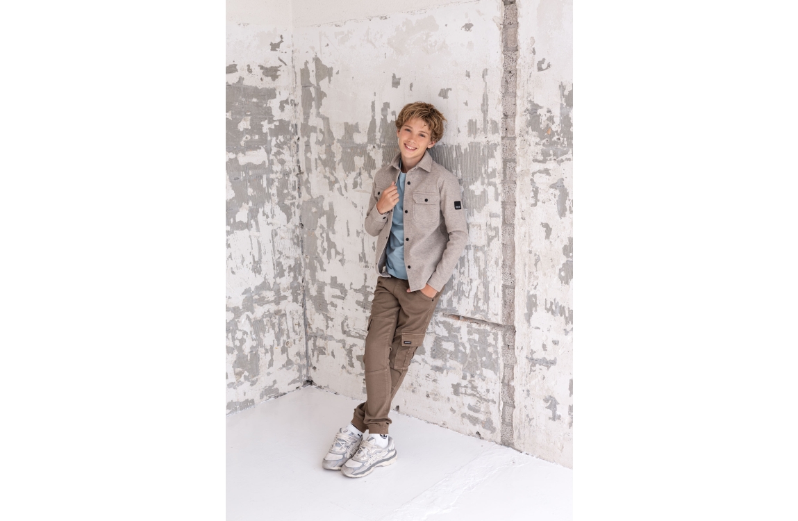 Omschrijving Sweat denim, garment dye, zijklepzakken