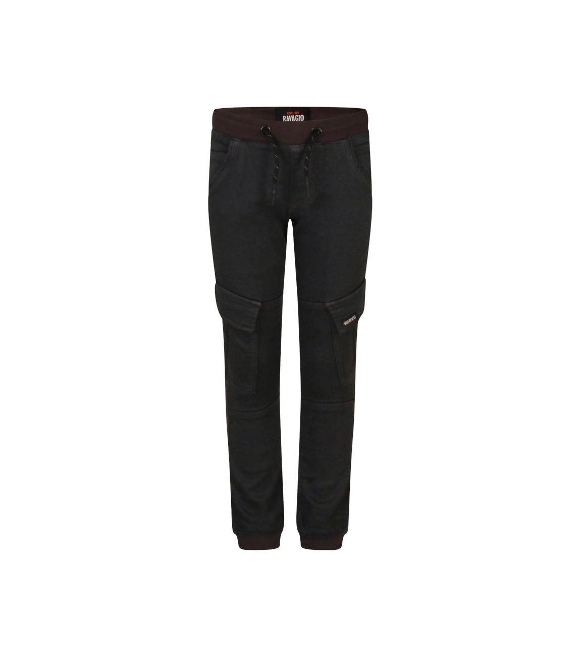 Omschrijving | Sweat denim, garment dye, zijklepzakken |