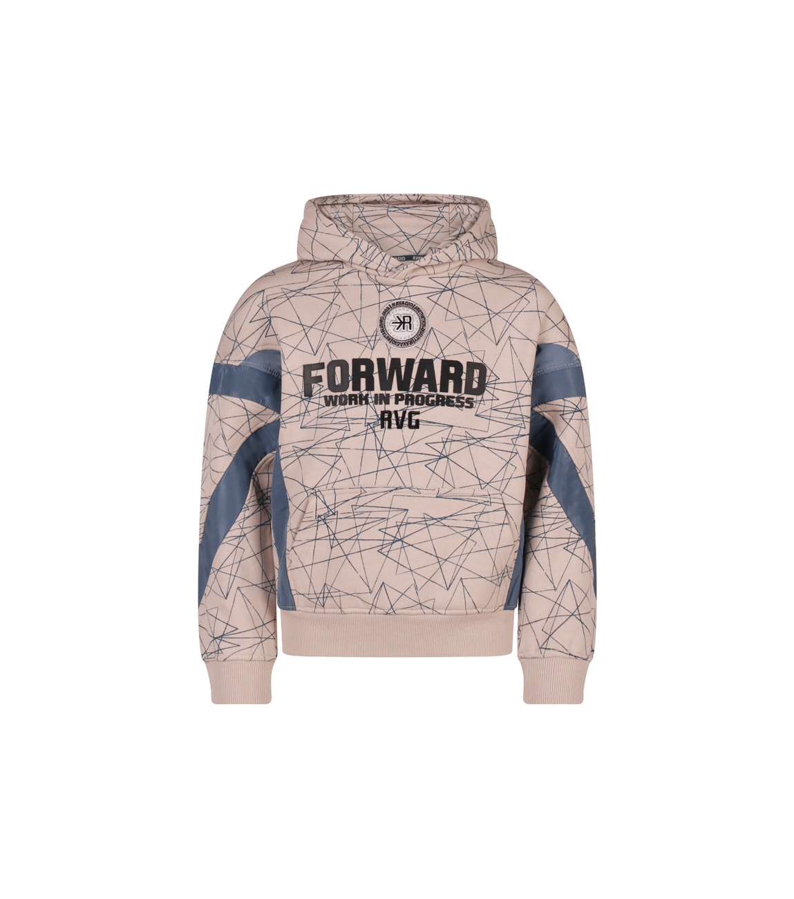 Omschrijving | Sweat, grafisch dessin, geweven banen, hood |
