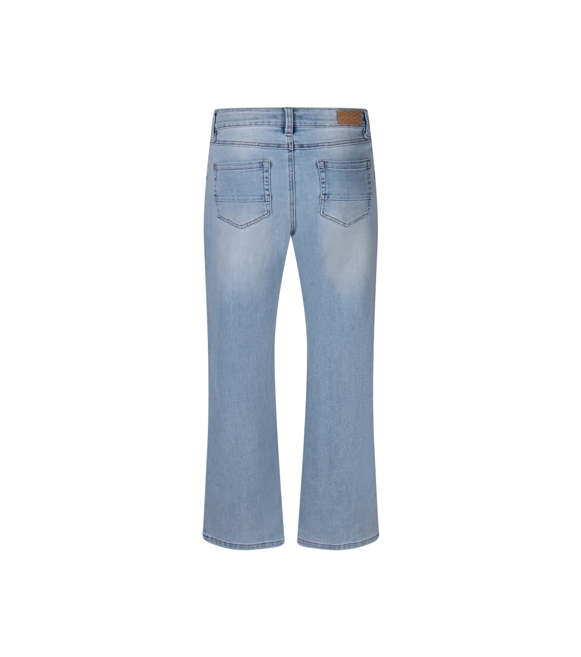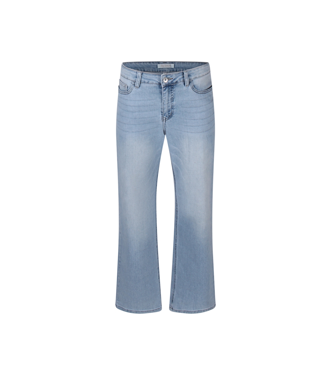 Omschrijving | Co/pol/el denim, 5-pocket, rechte pijp |