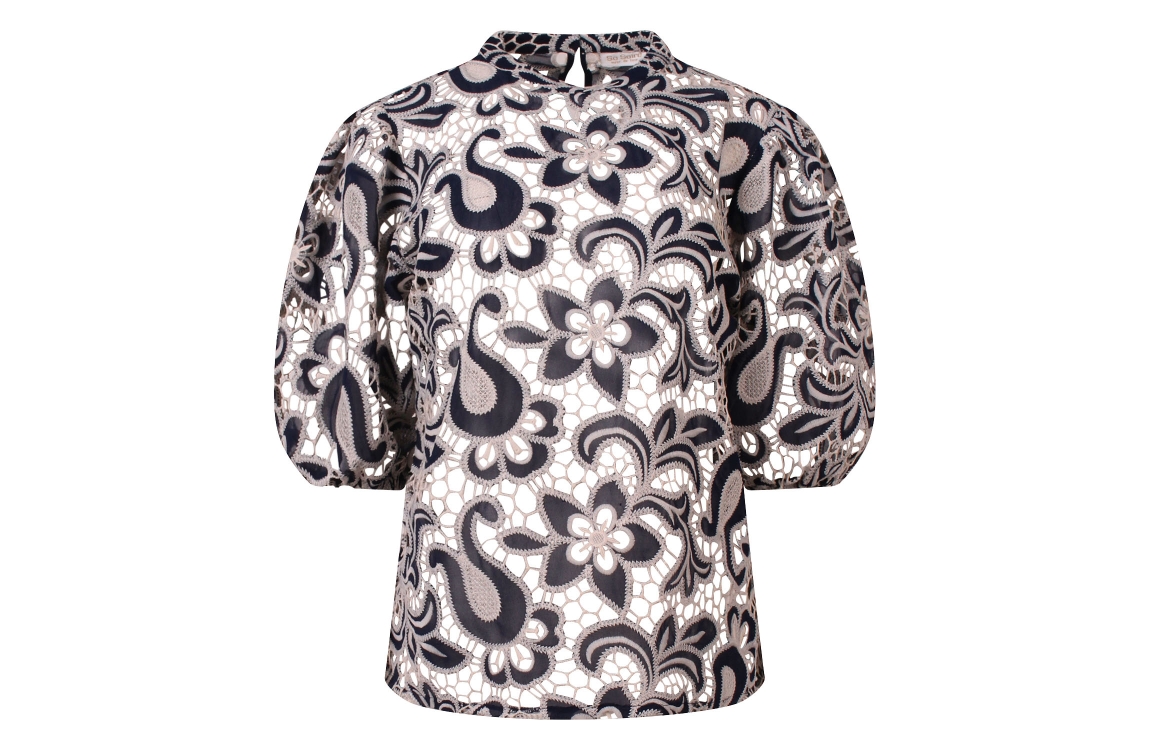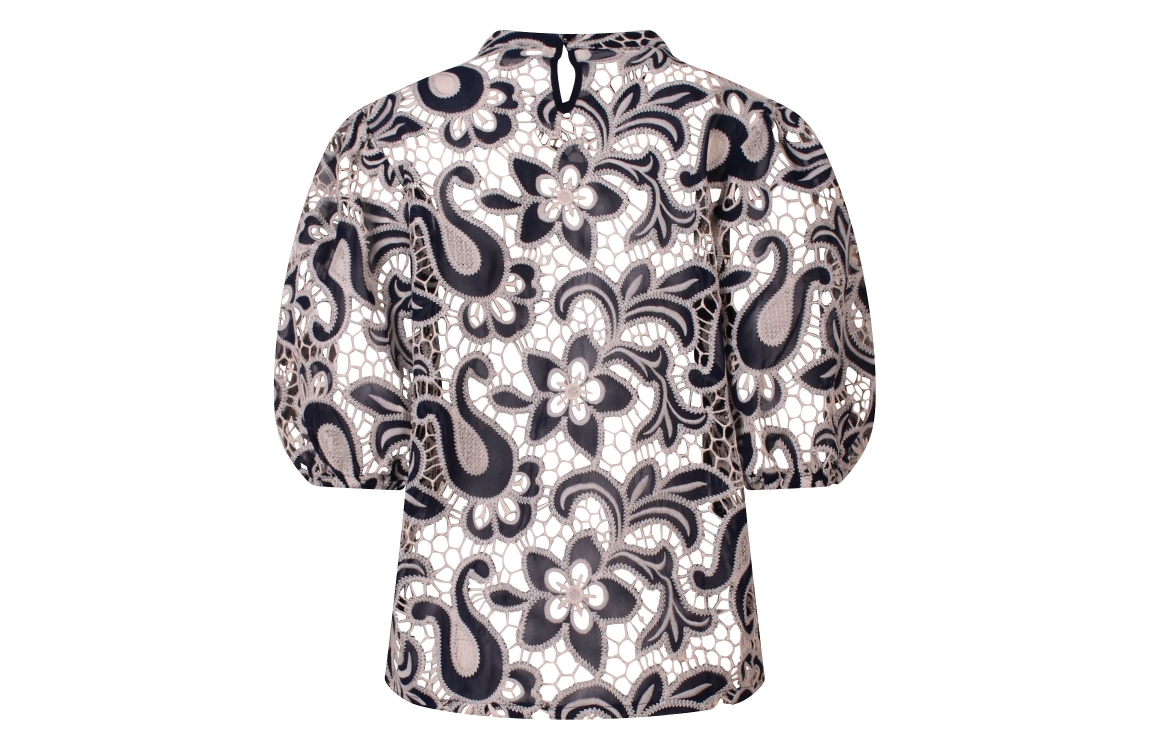 Omschrijving Pol. lace met contastkleur, pofmouw