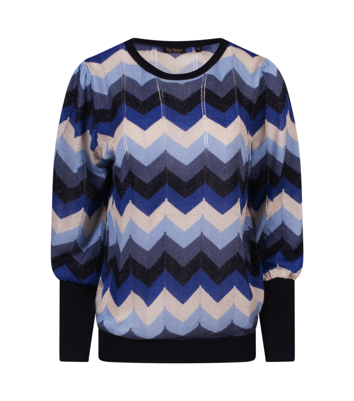 Omschrijving | Visc/pol/lurex, meerkleurig zigzagdessin |