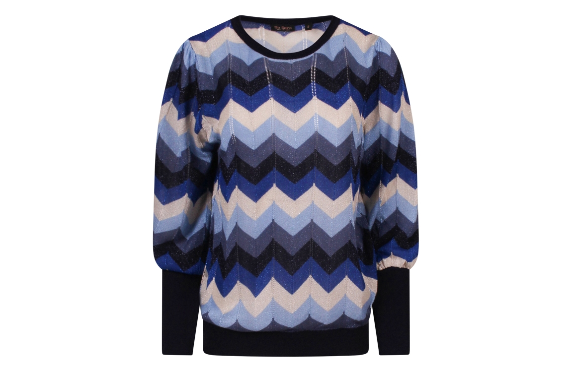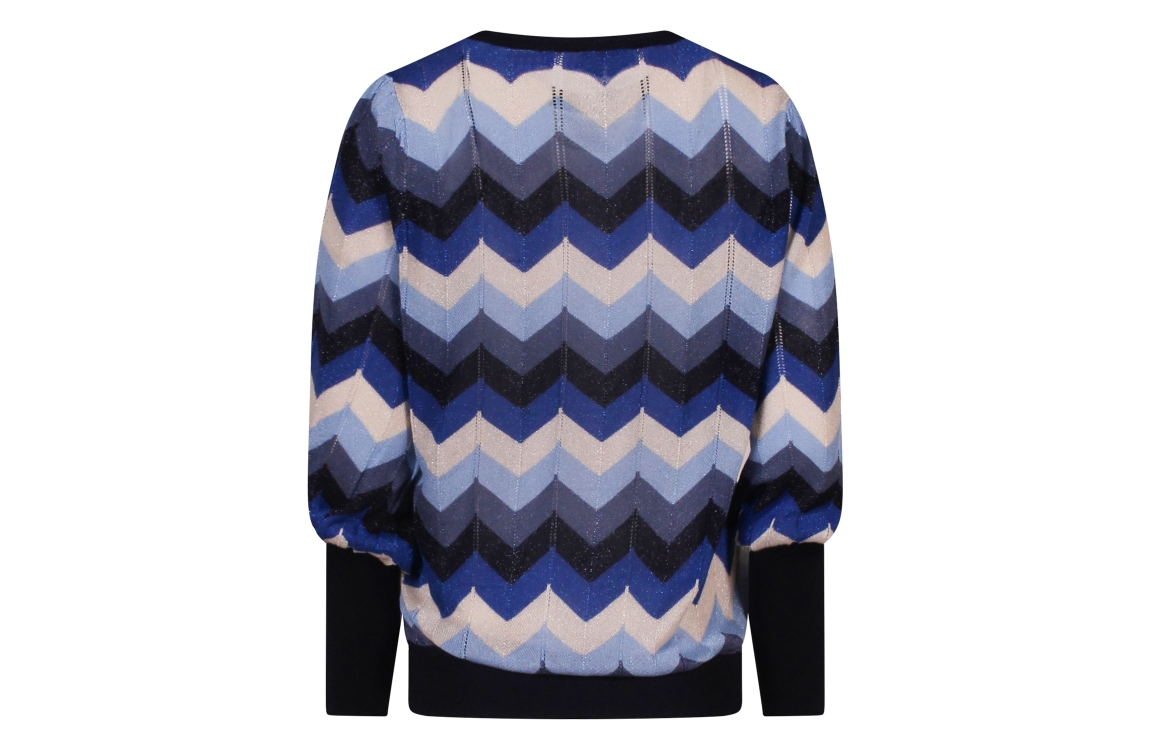 Omschrijving Visc/pol/lurex, meerkleurig zigzagdessin