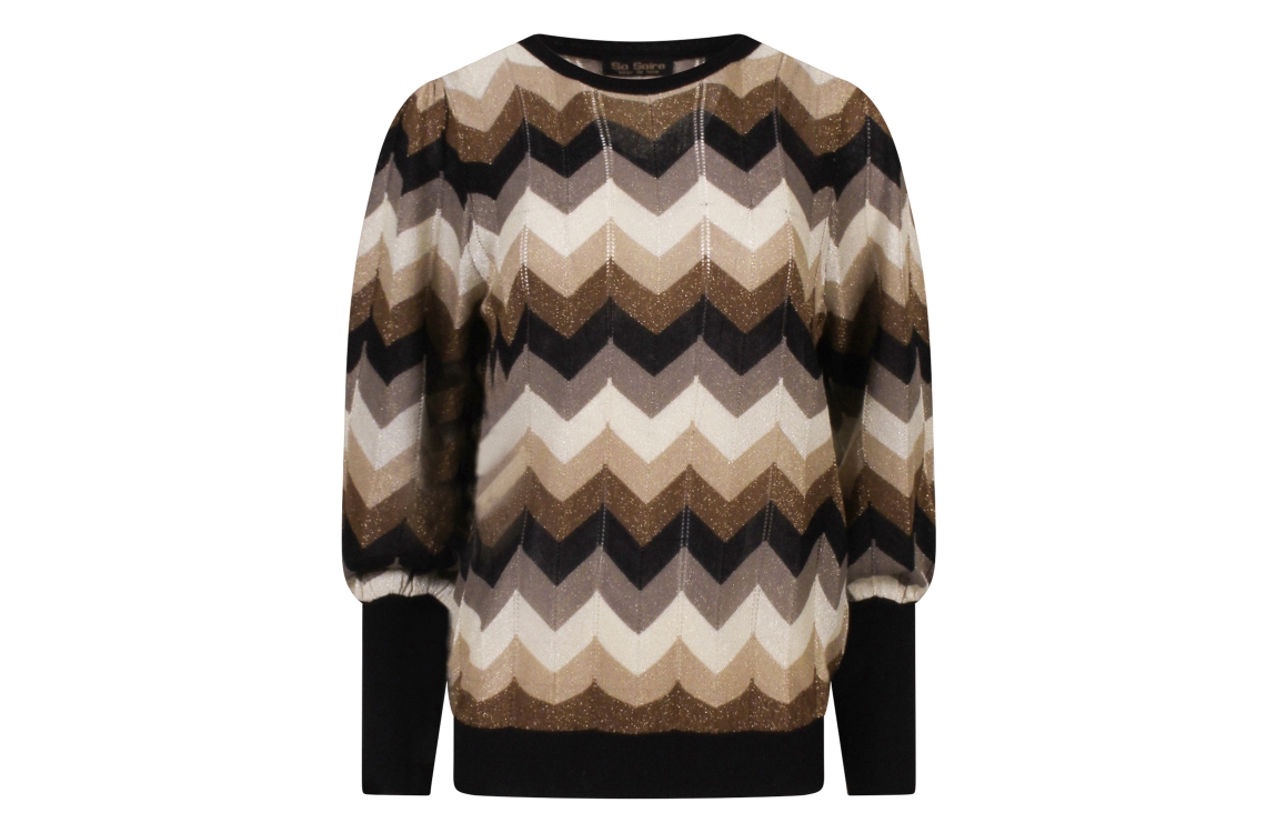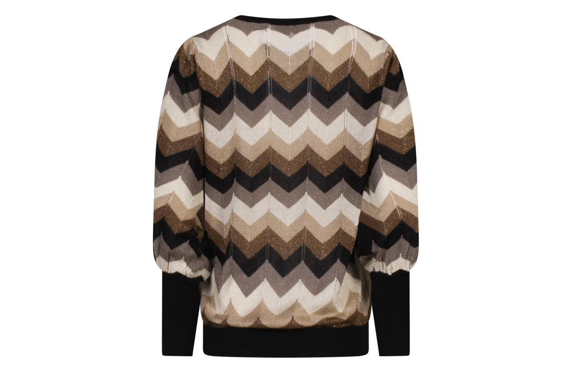 Omschrijving Visc/pol/lurex, meerkleurig zigzagdessin
