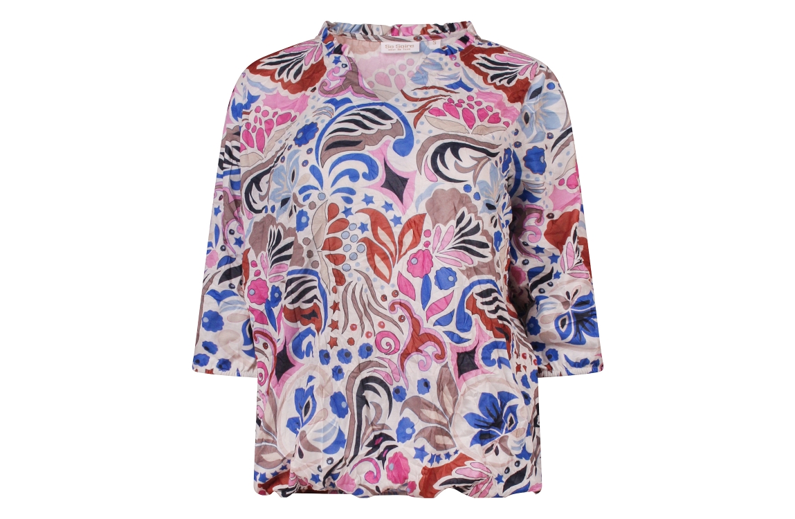 Omschrijving Pol cruch, bloem/paisleydessin, 3/4 mouw