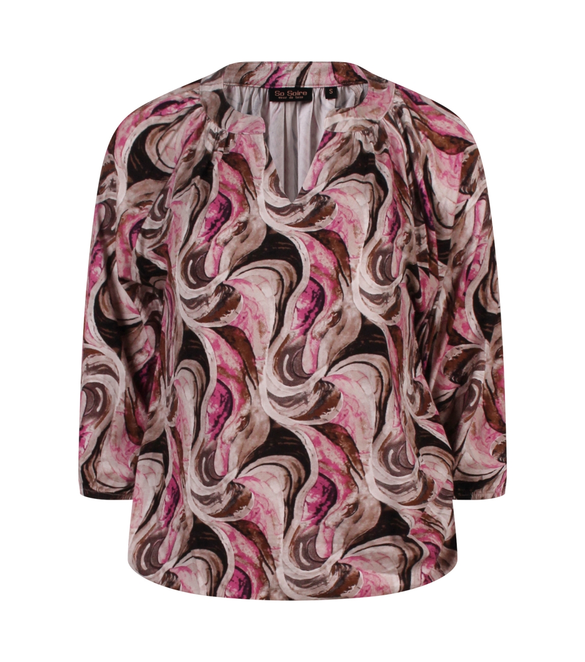 Omschrijving | Visc/el, dessin, maokraagje, 3/4 mouw |