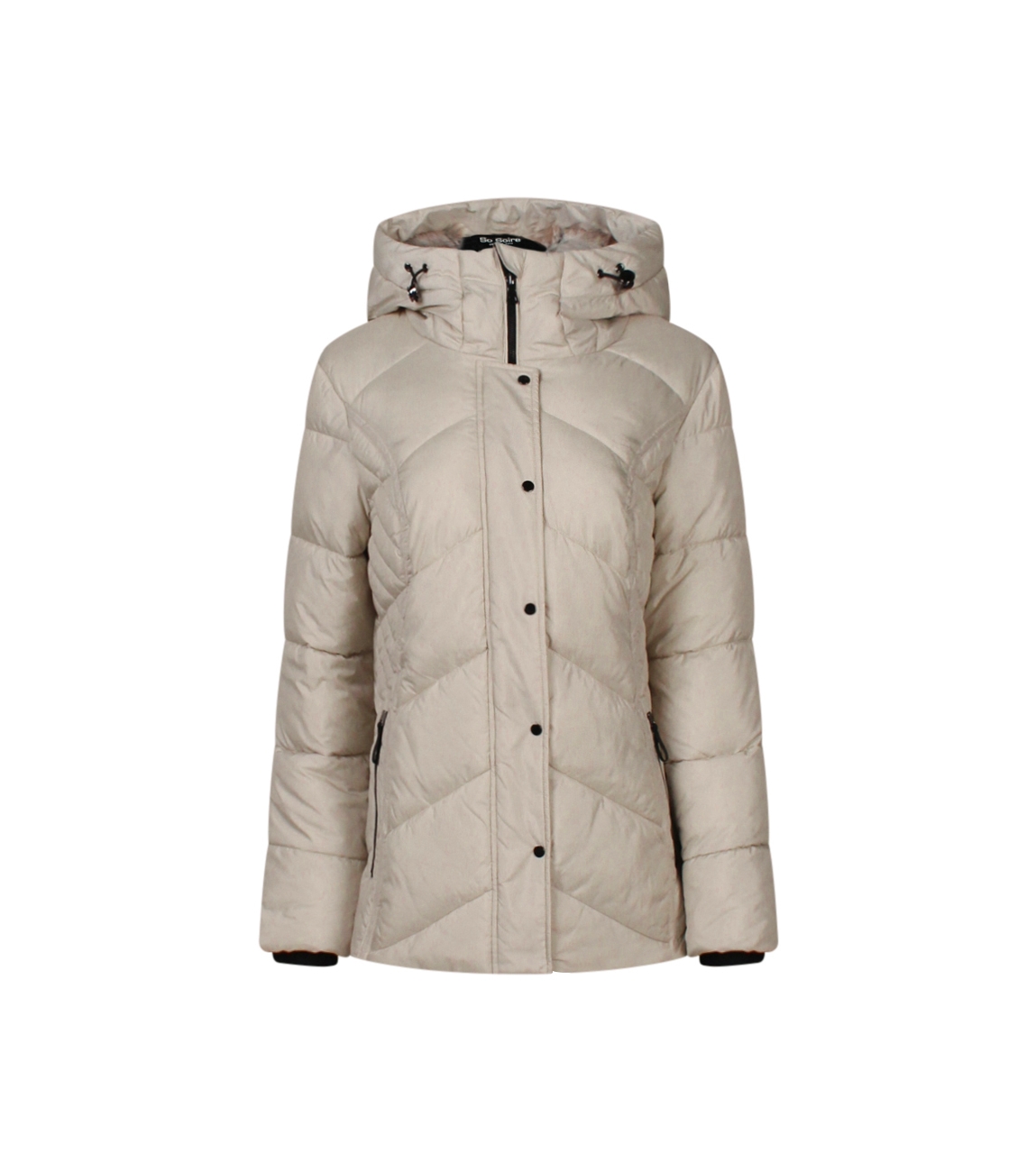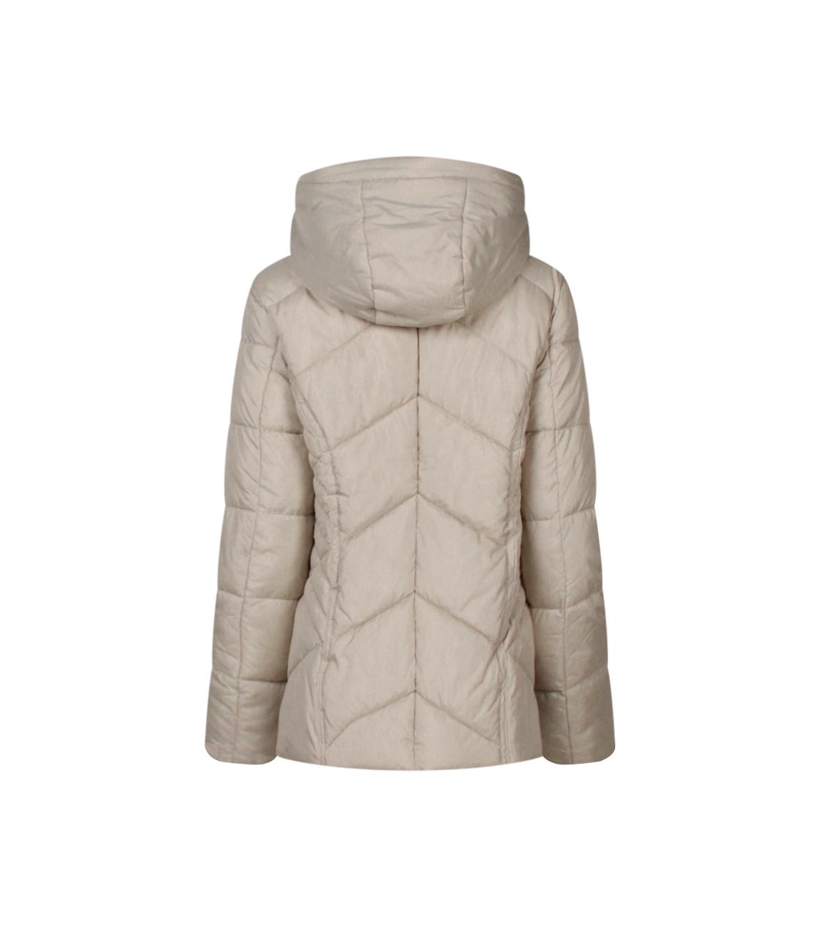 Omschrijving | Pol. gestept, hood bont, ritszakken |