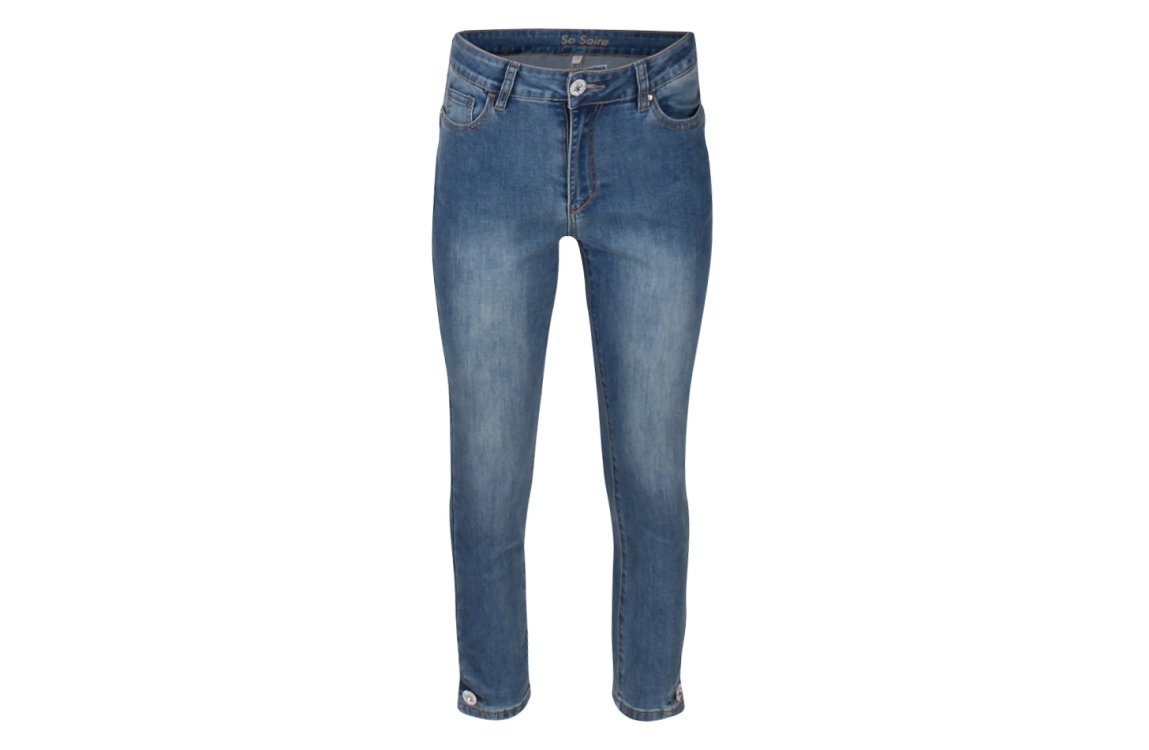 Omschrijving Denim, 5-pocket, strassknopen, 26 inch