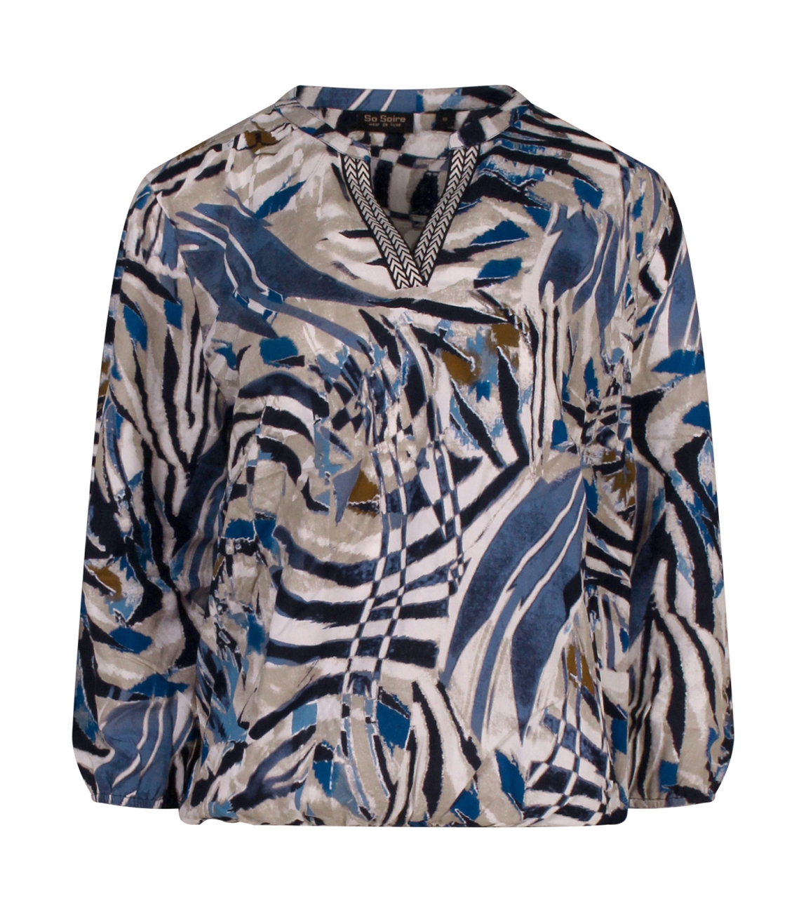 Omschrijving | Visc, zebradessin, fancy tape, 3/4 mouw |
