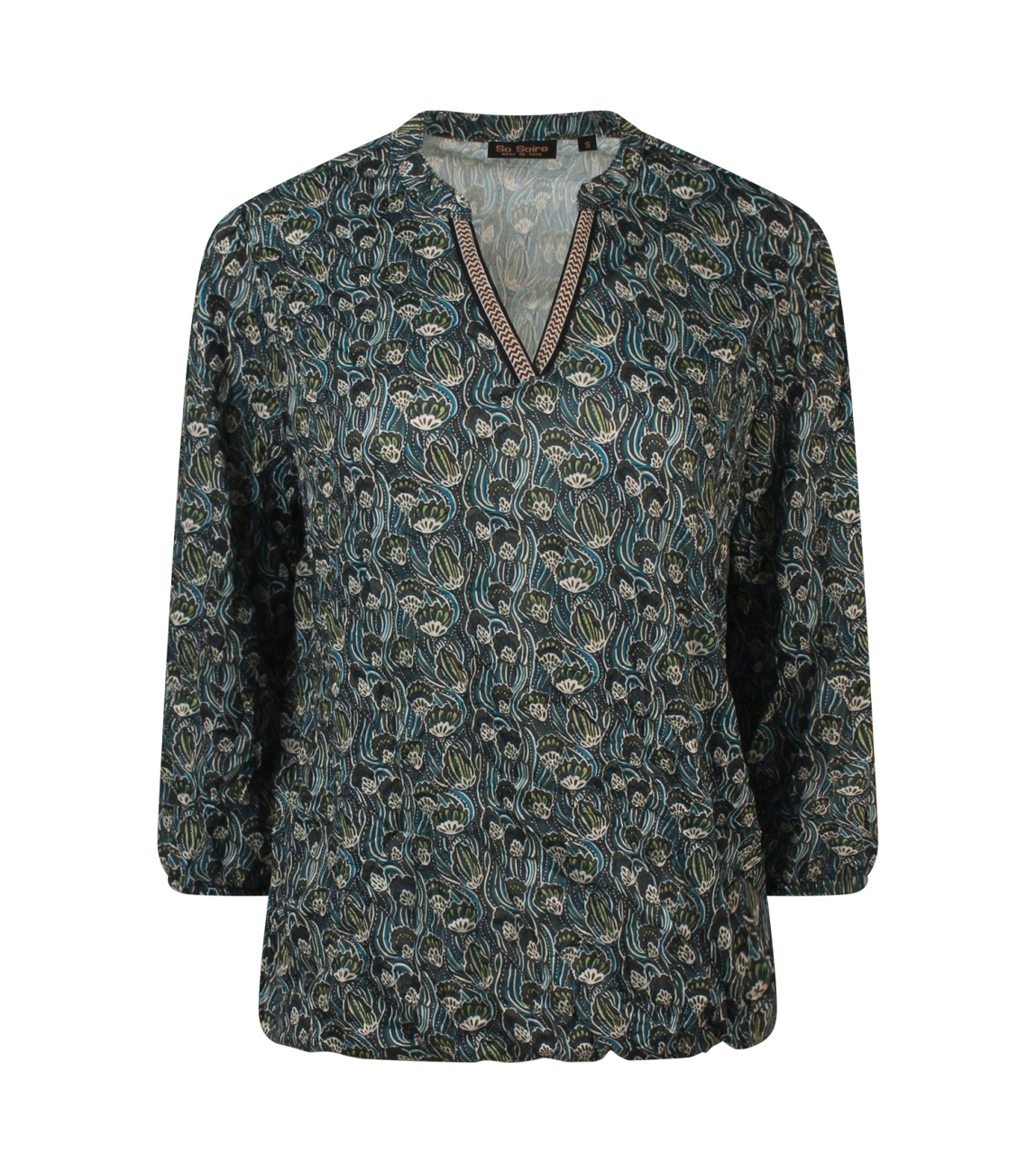 Omschrijving | Pol crush, dessin, fancy tape, 3/4 mouw |