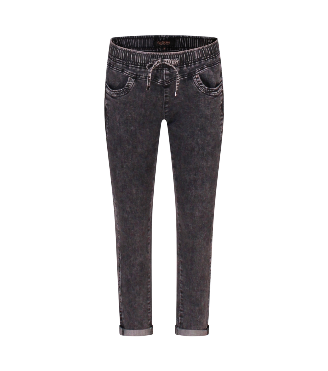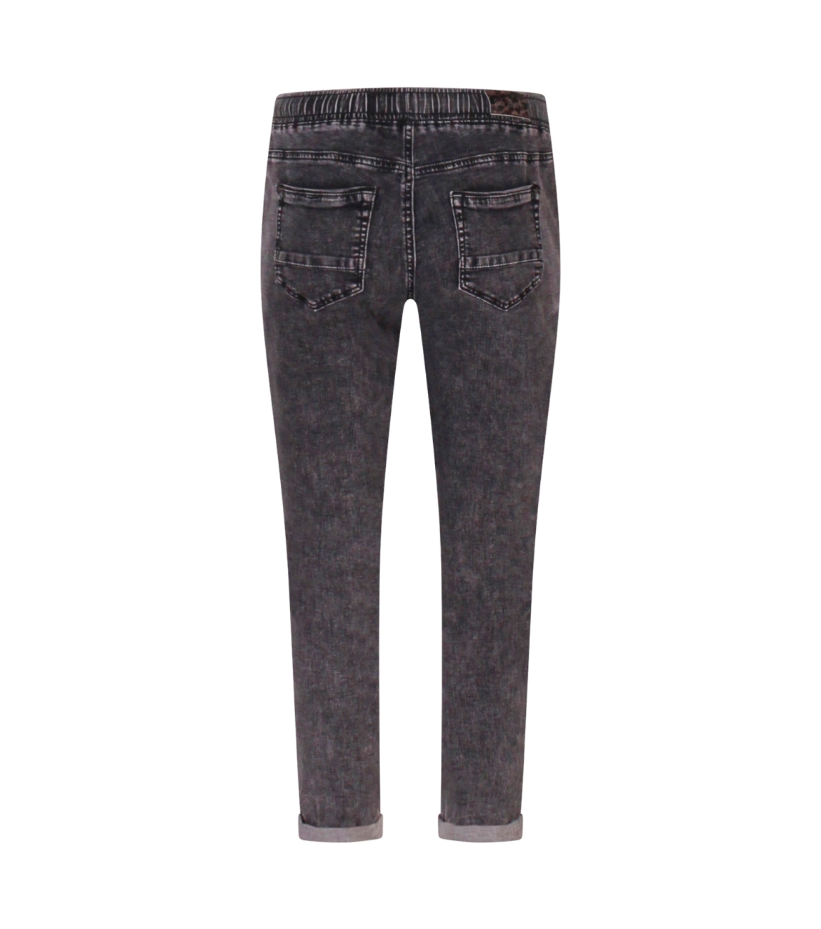 Omschrijving | Co/pol/el, snowwash, ritsjes, elastieke band |