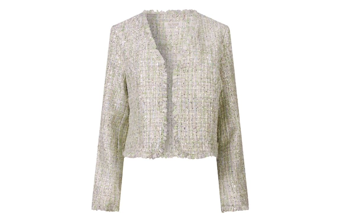 Omschrijving Pol boucle, pailetten, rafeltjes