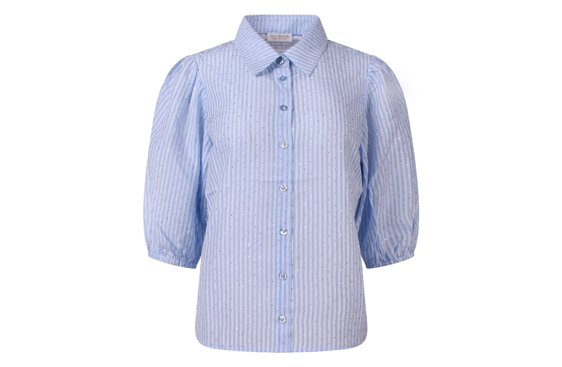 Omschrijving Streep met allover strass, pofmouw