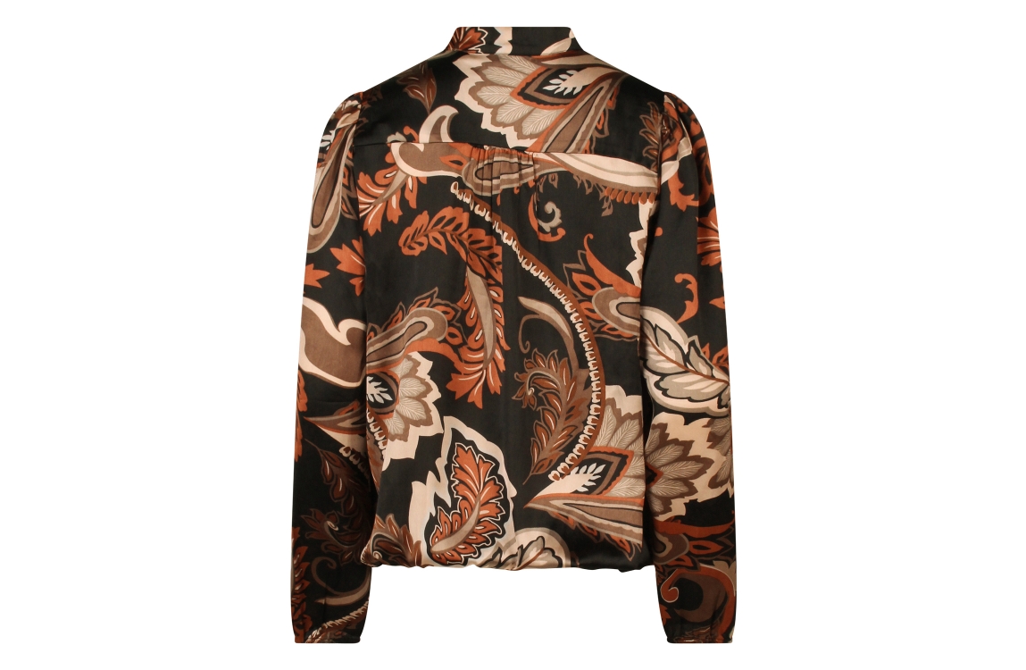 Omschrijving Pol. satin, bloemdessin, strikkraag