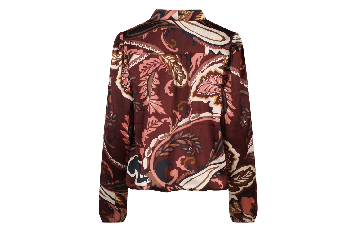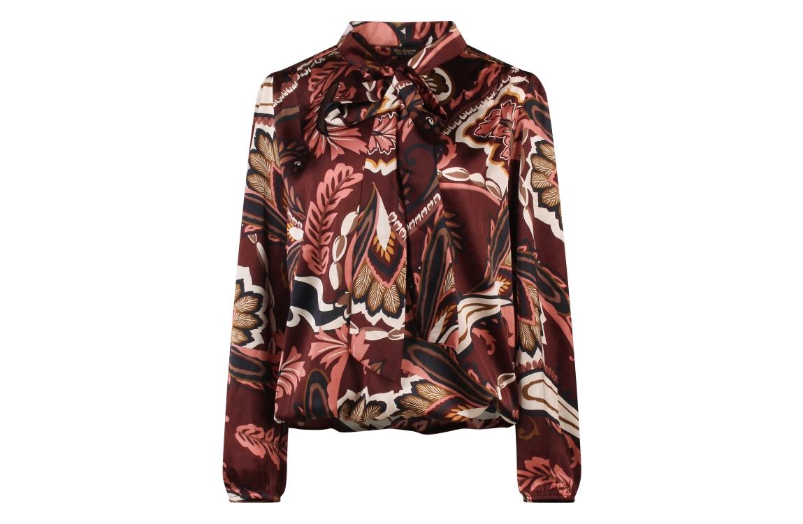 Omschrijving Pol. satin, bloemdessin, strikkraag