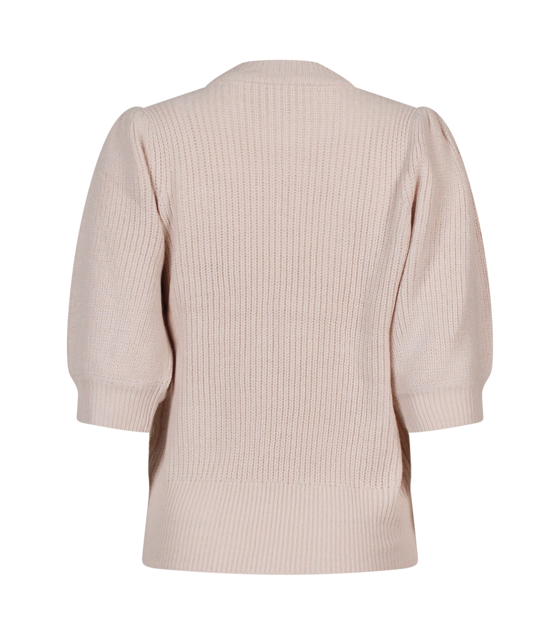 Omschrijving | Acr/pol ribbrei, korte pofmouw, strikken |