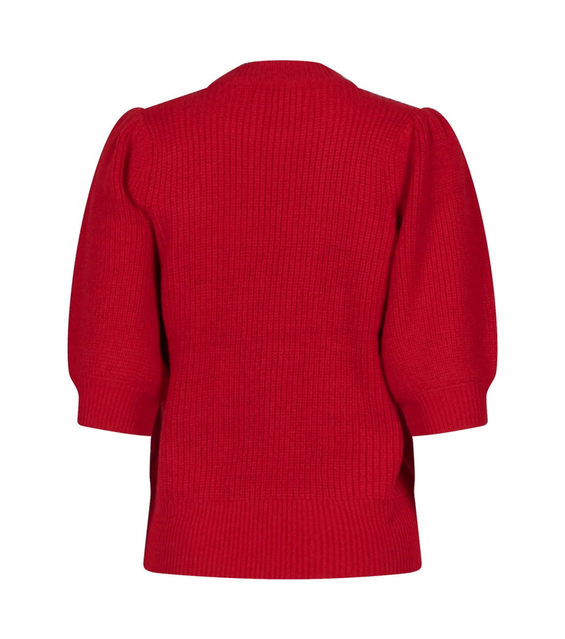 Omschrijving | Acr/pol ribbrei, korte pofmouw, strikken |