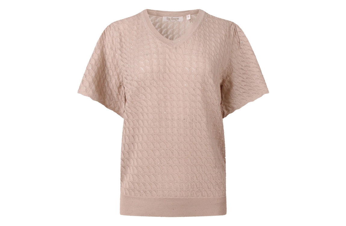 Omschrijving Ajourbrei, pailetten, korte vlindermouw
