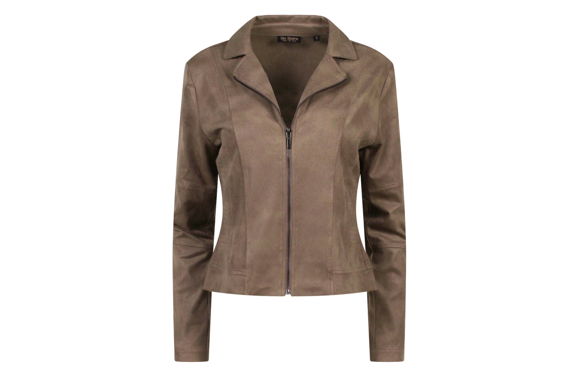 Omschrijving Pol/el suedine, reverkraag, ritssluiting