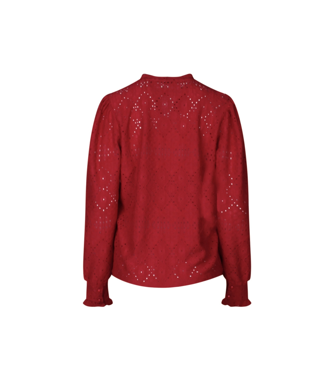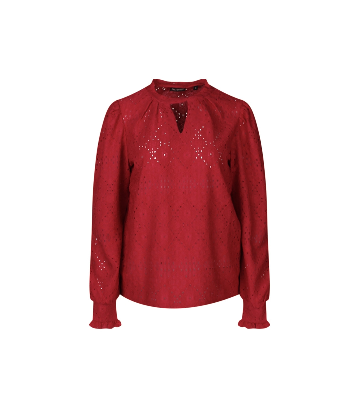 Omschrijving | Pol/el ajour jersey, splitje voor, pofmouw |