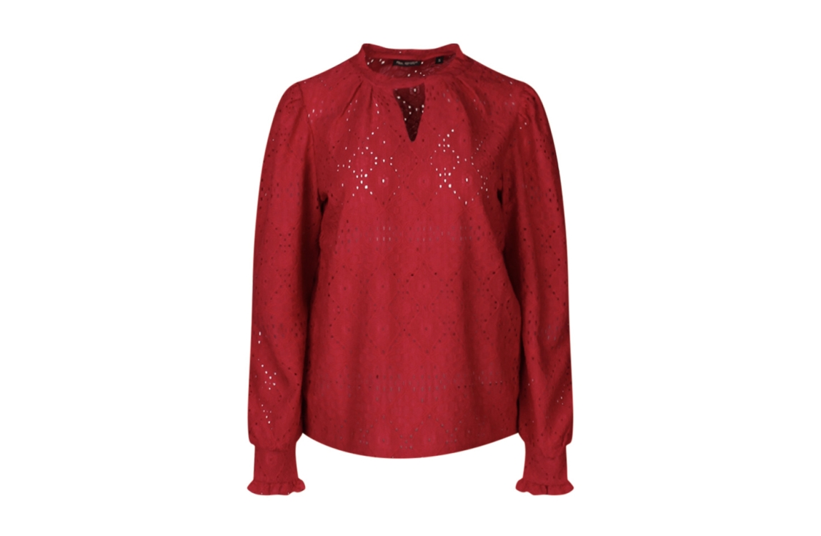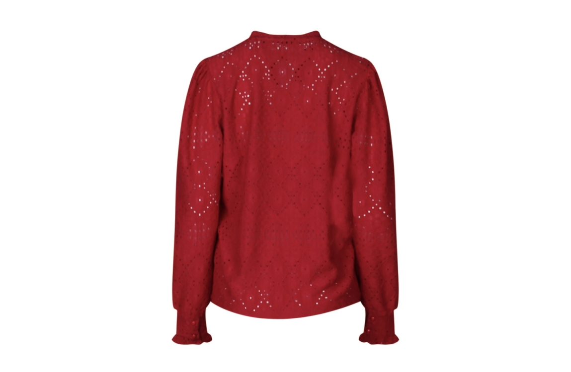 Omschrijving Pol/el ajour jersey, splitje voor, pofmouw