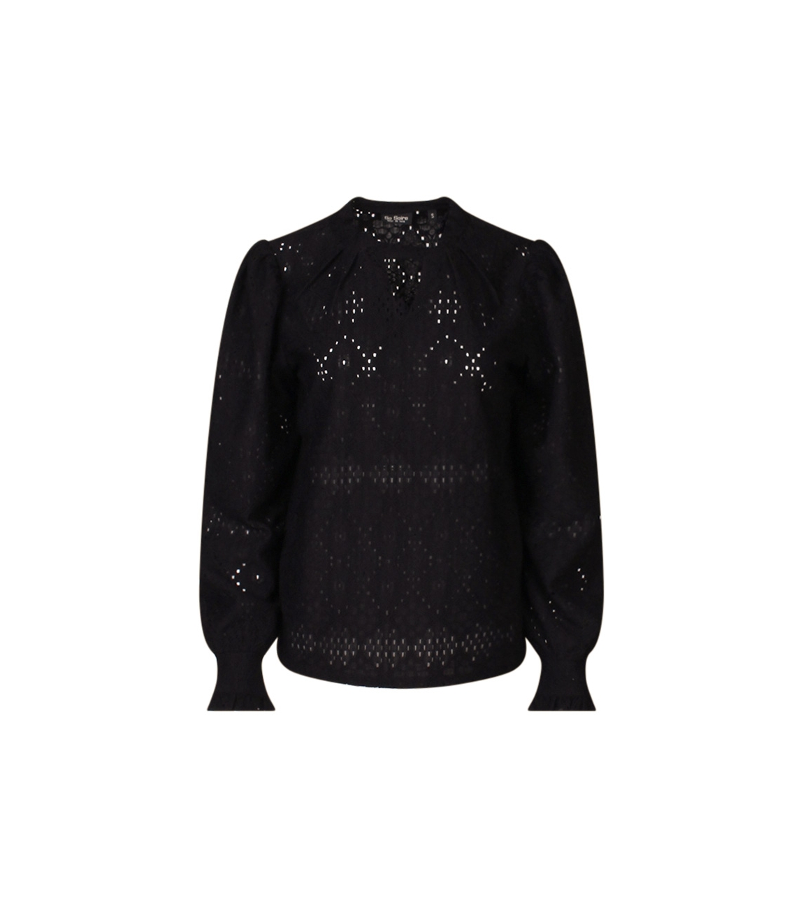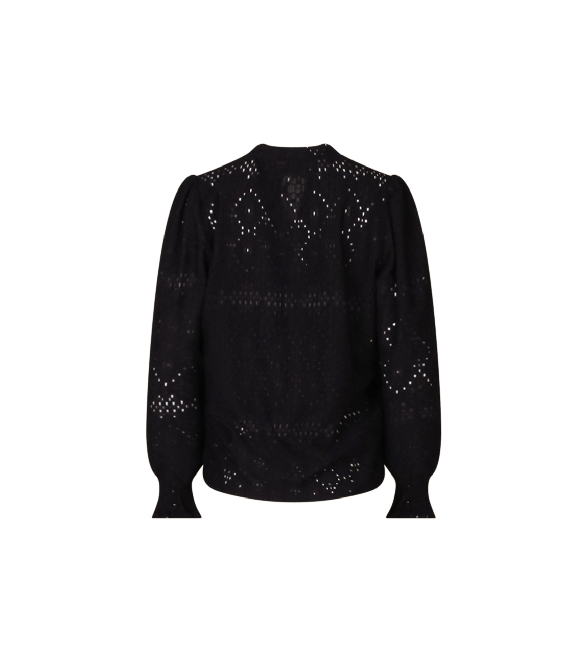Omschrijving | Pol/el ajour jersey, splitje voor, pofmouw |